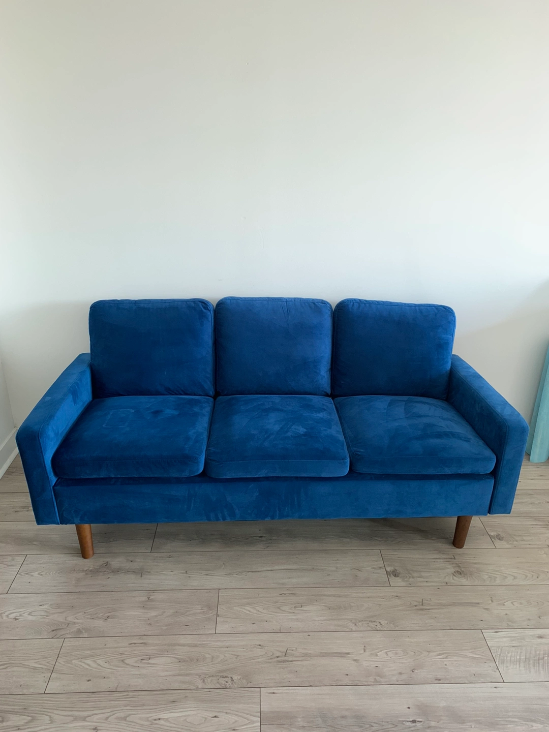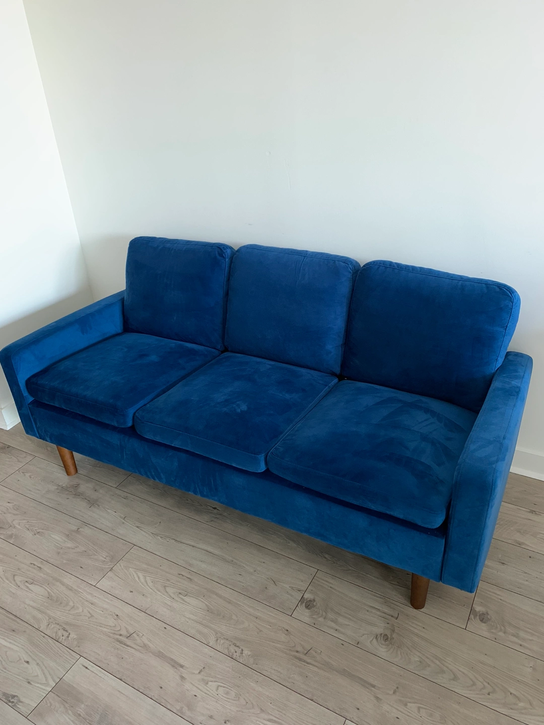 62Selling a two piece set, which includes a full couch and love seat in beautiful royal blue. The couch is in excellent condition and is available for purchase separately for just $300. However, if you're handy with repairs, we're also including the love-seat for free, despite the broken leg. If you'd rather not take on a repair project, don't worry! I’m happy to sell just the couch on its own. And if you're able to pick it up yourself, I’ll even knock $50 off the asking price.