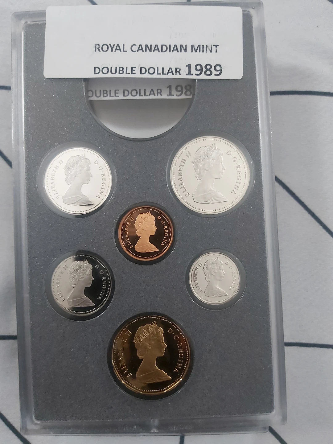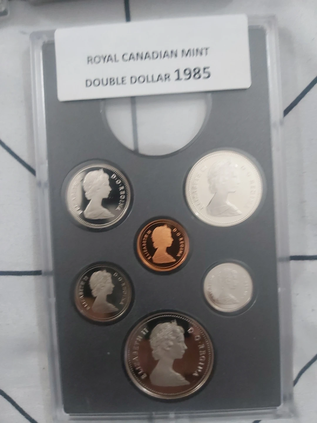 185I'm selling Royal Canadian Mint Double Dollar coin sets. Each set includes various Canadian coins from the Royal Canadian Mint, including a double dollar coin. Perfect for coin collectors! Brand New Uncirculated coins