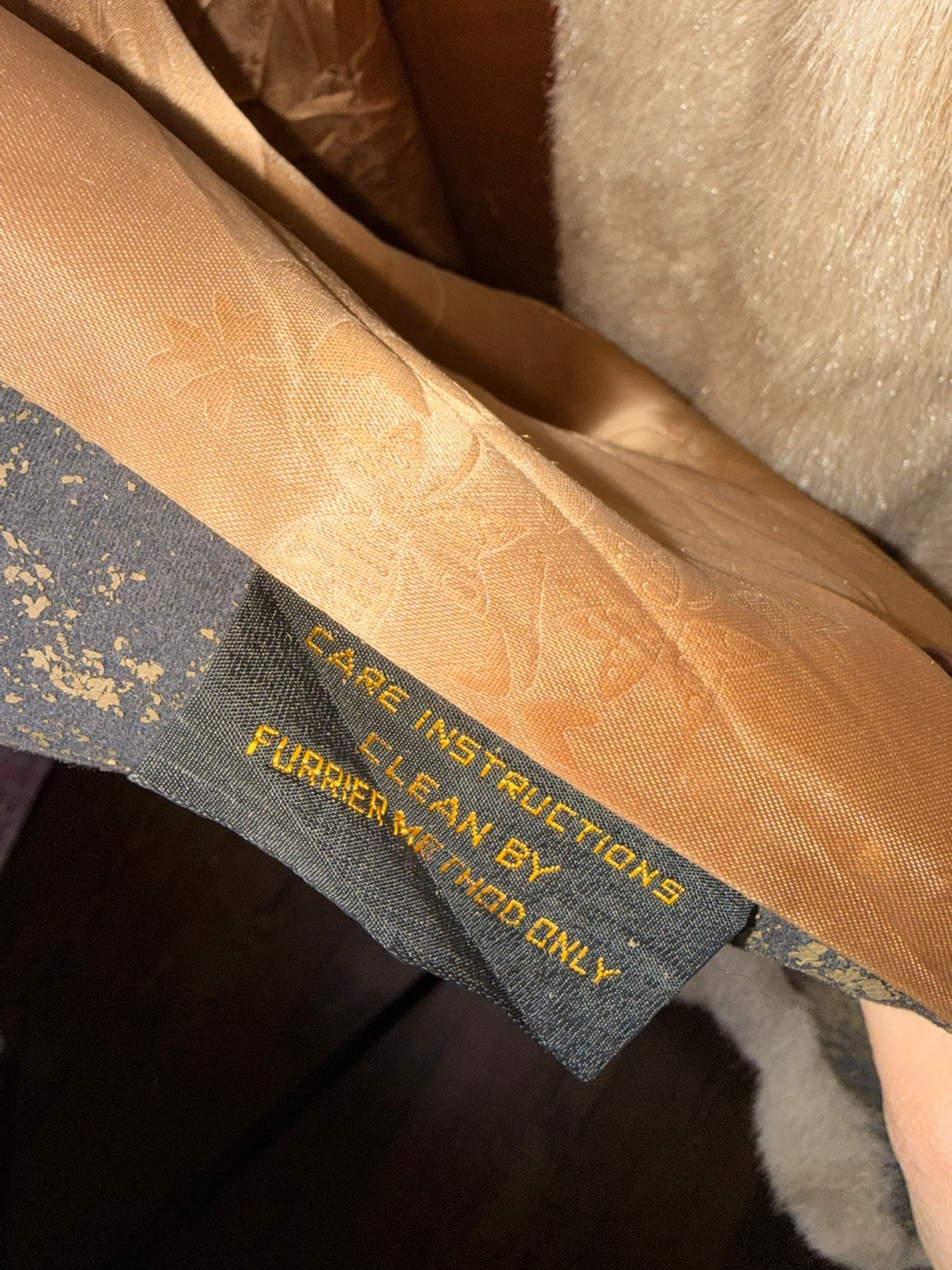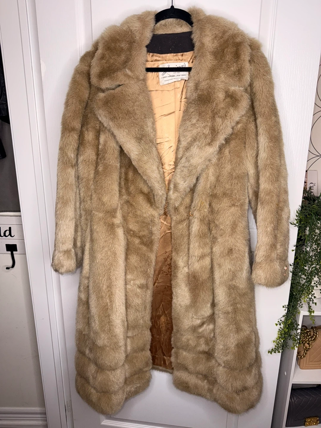 Stay warm and stylish with this elegant tan fur coat. Perfect for any occasion, this coat adds a touch of luxury to your wardrobe. Mink Fur Coat No rips Outer pockets Based on my experience with fur this could use a conditioning as the fur isn’t soft And the leather on the inner lining has peeled off Size is not included but I would say it’s roughly an 8-10 PTP 22.5” Waist 24” Length 45” Sleeve 23”