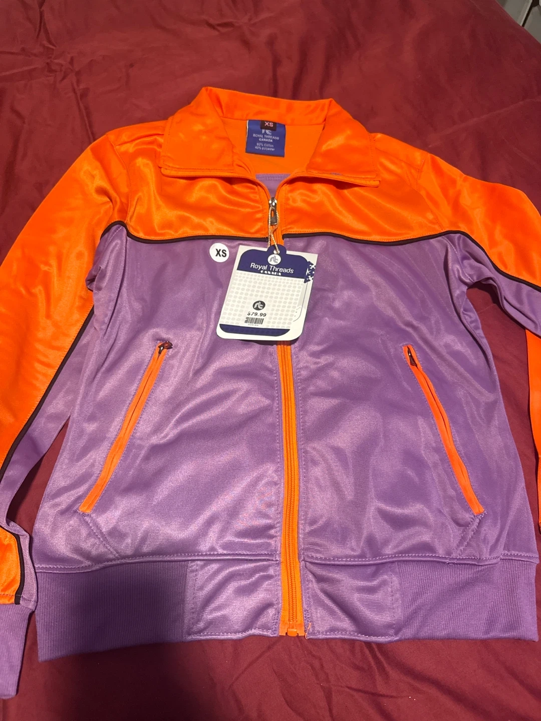 92Royal Threads tracksuit in size XS. The colours are purple and orange. The original price was $79.99. Perfect for lounging or working out!