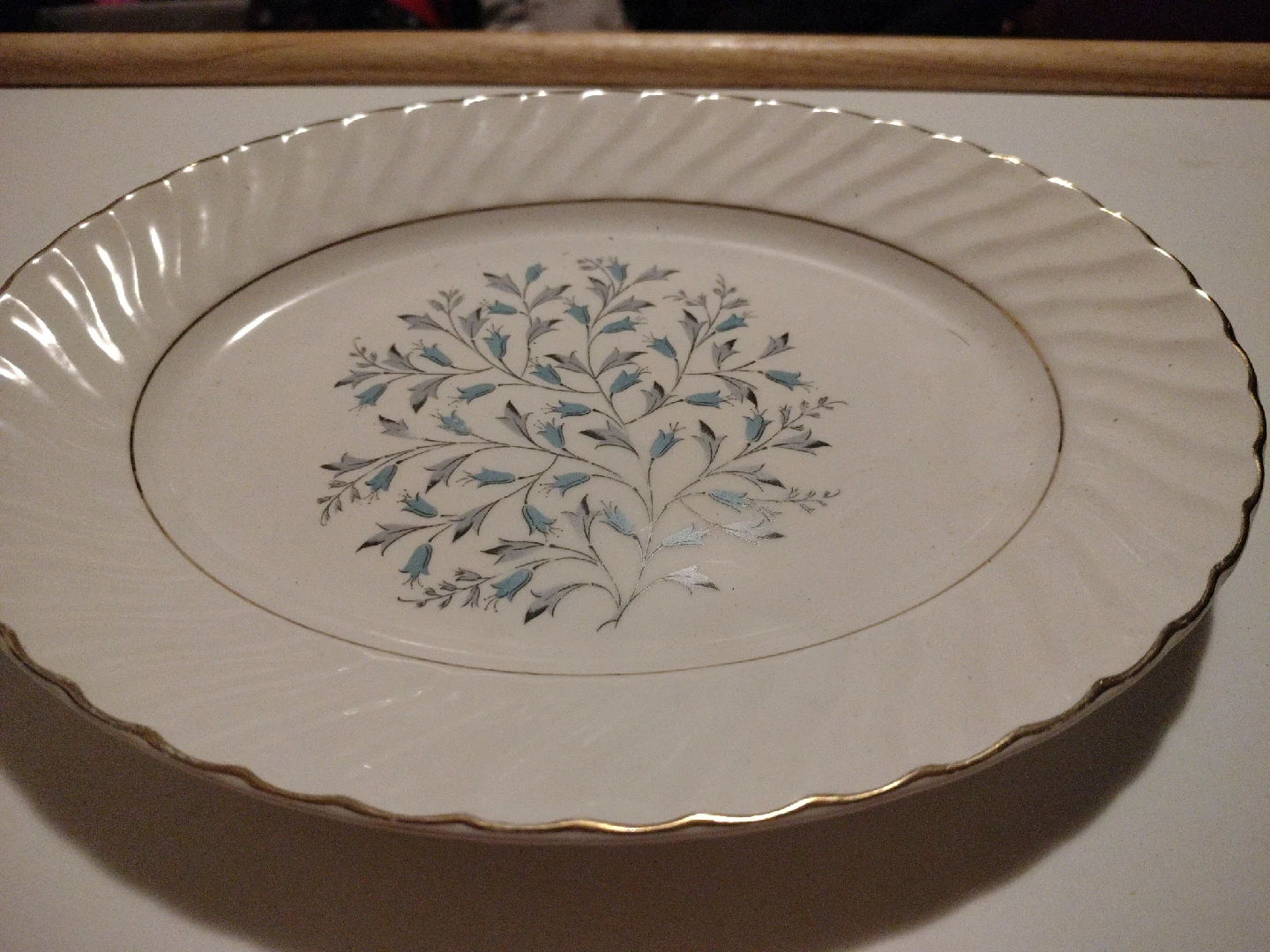 80Selling a Royal Wessex Ironstone plate made in England by Swinnertons for Zellers. It features a lovely floral design in blue and grey tones with a gold trim. A beautiful vintage piece to add to your collection!