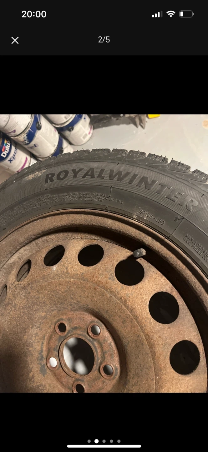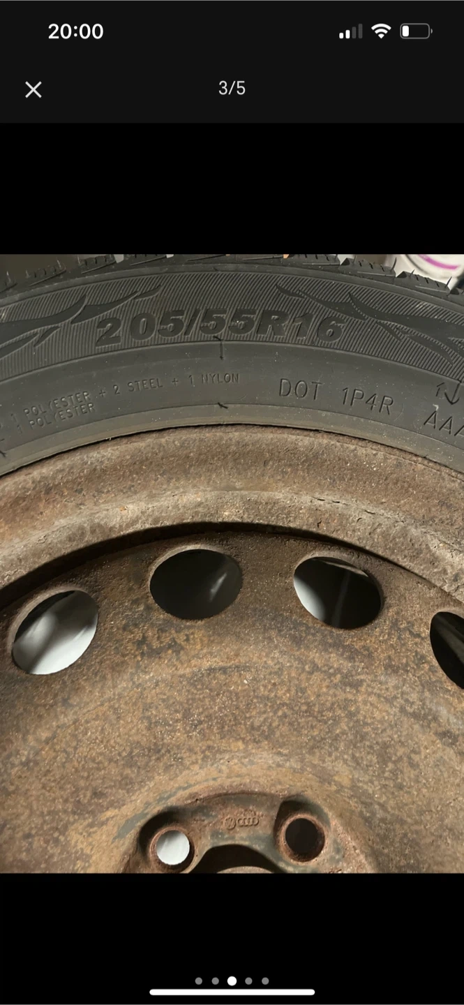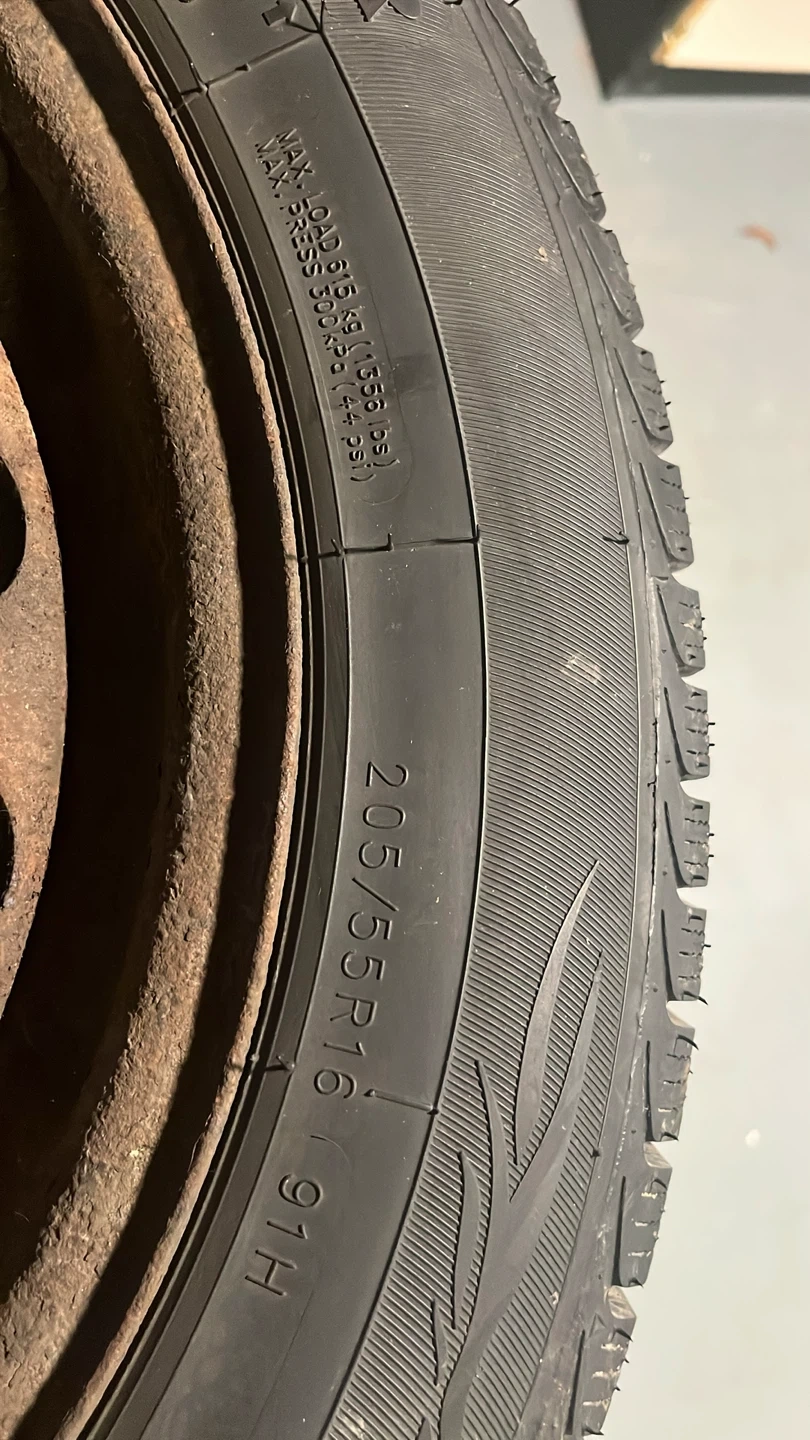 5Selling a (4)Royal Winter tire, size 205/55R16, mounted on a rim. The tire is a steel-belted radial and is tubeless. It's in used condition.