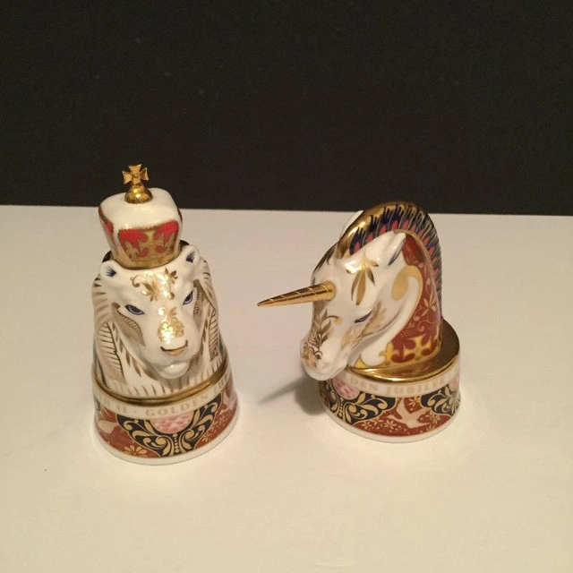 69Royal Worcester - Lion & Unicorn - Golden Jubilee - with original box and certificate - Limited edition of 750 - this pair is #686
