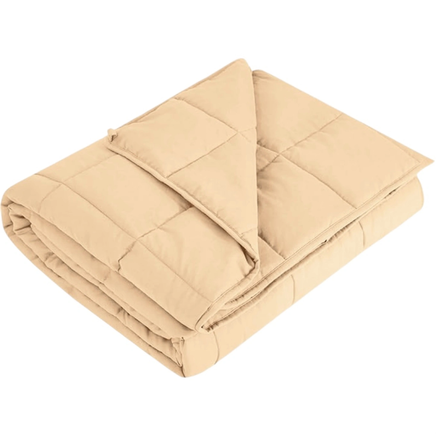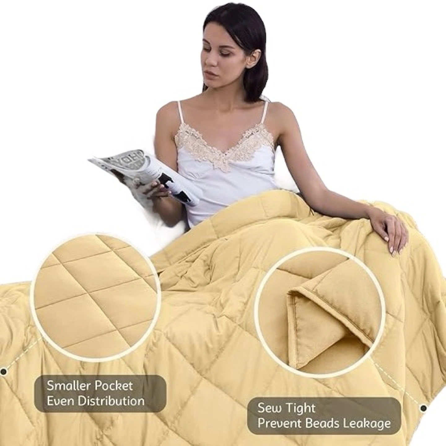 Weighted blankets are proven to help you fall asleep faster, and sleep better throughout the night, waking up well-rested the next morning. This cotton blanket is filled with non-toxic glass beads, evenly distributed in each compartment with firm quilted sewing. Machine Washable!