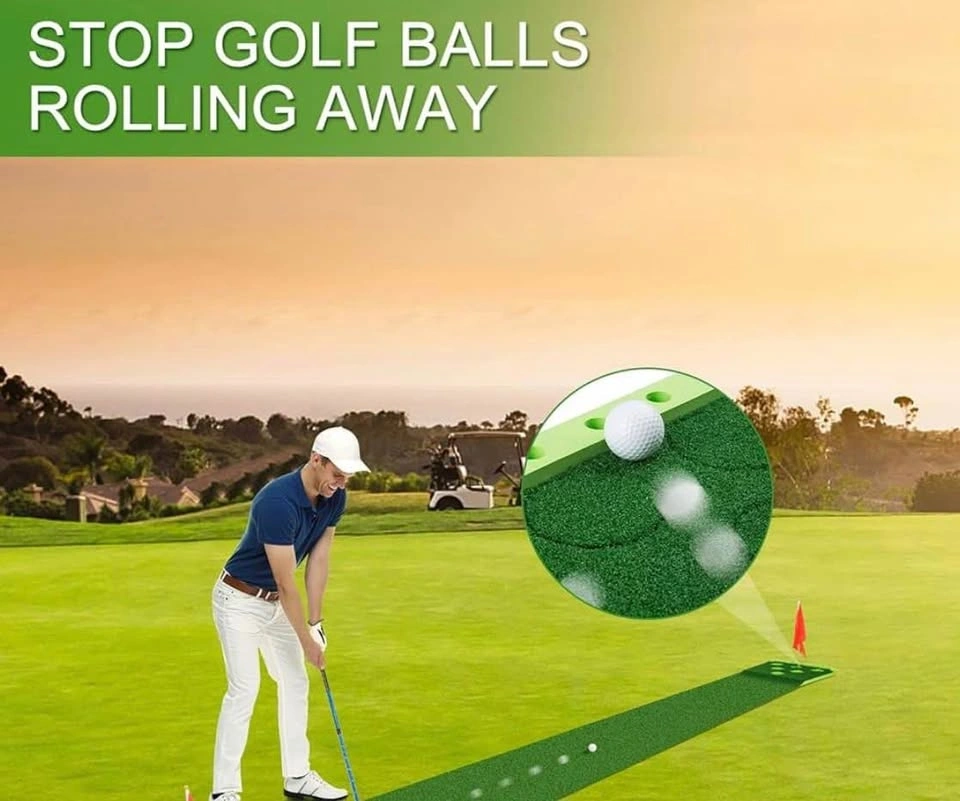 Golf Pong Putting Game Set with Front Border for Indoor & Outdoor use. Includes 3 Golf Balls (1 sponge), 1 Club & Portable Bag. Great for backyard, party, or office practice.
