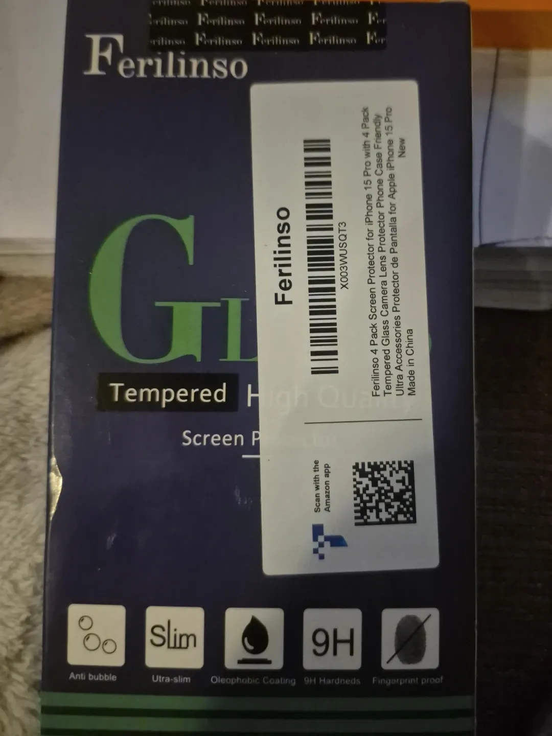 Selling a brand new Ferilinso 4-pack screen protector for the iPhone 15 Pro! This includes tempered glass camera lens protectors and is phone case friendly. It also has anti-bubble, ultra-slim, oleophobic coating, 9H hardness, and fingerprint-proof features
