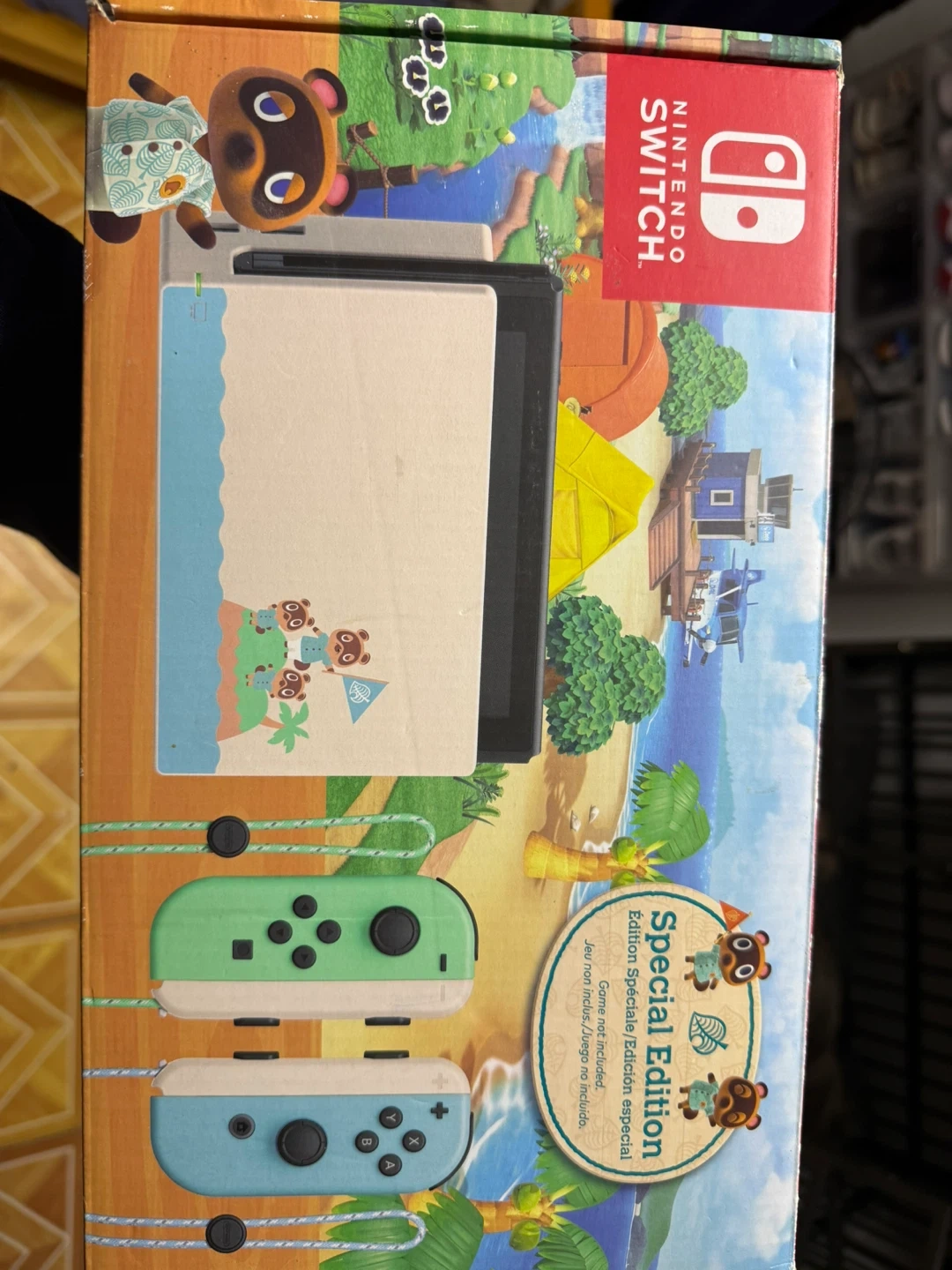 This is the box for a Nintendo Switch Special Edition console. It features artwork from Animal Crossing: New Horizons. The game is not included.