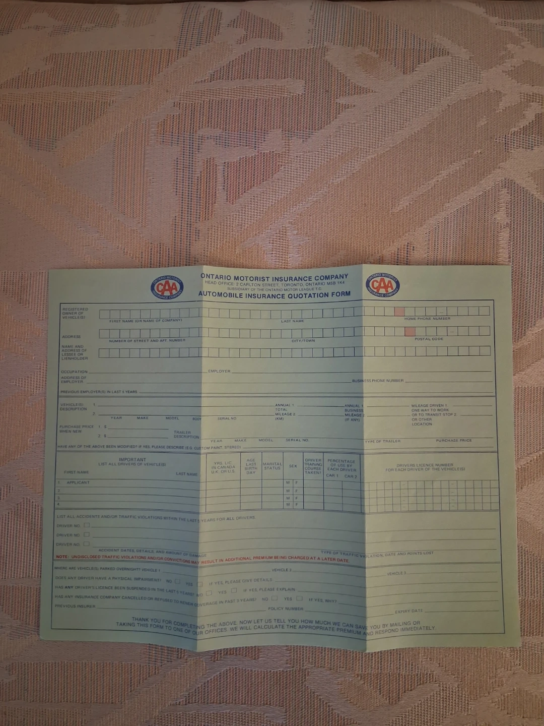 Buy & SellVintage 1982 CAA Automobile Insurance quotation formVintage 1982 CAA Automobile Insurance quotation form$5Available for pickup/public meetup in Mississauga. Cash and E Transfer accepted. WHERE TO MEETBud Gregory Boulevard & Gatineau AvenueView MapSELLERRobert EHurontario717 reviews0 chats·0 favorites·3 viewsSEND CHAT TO SELLERHi Robert E! I’m interested in your listing.Hi Robert E! I’m interested in your listing.Get the Karrot app to chatSign In to chat