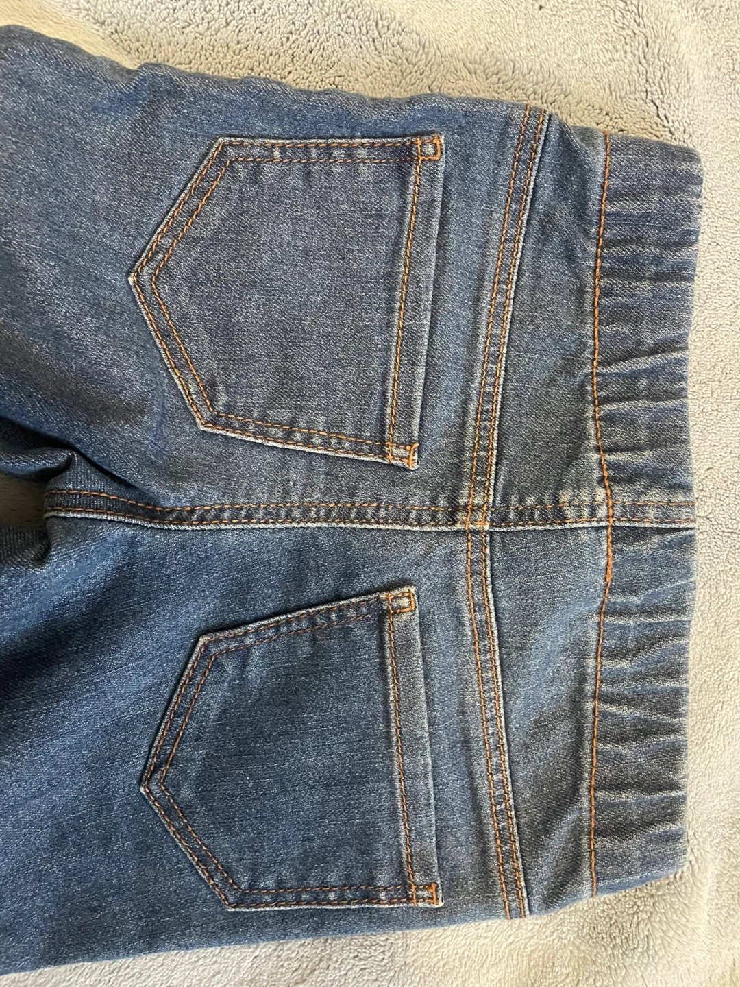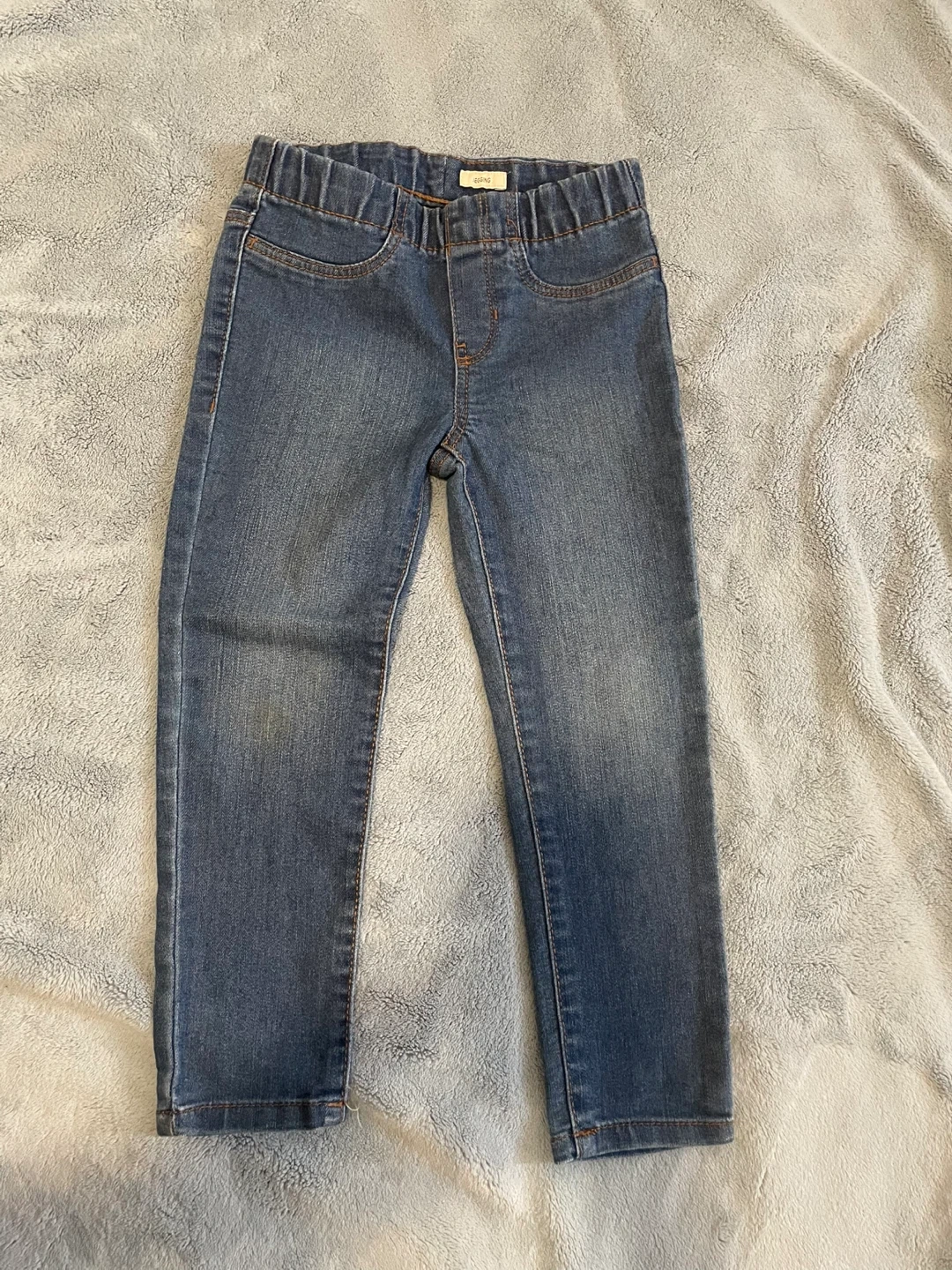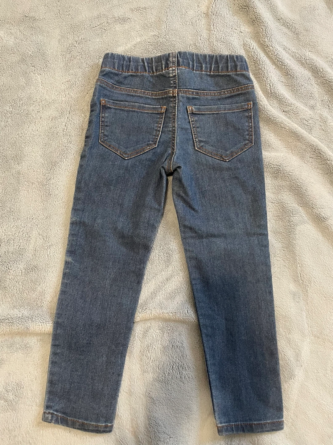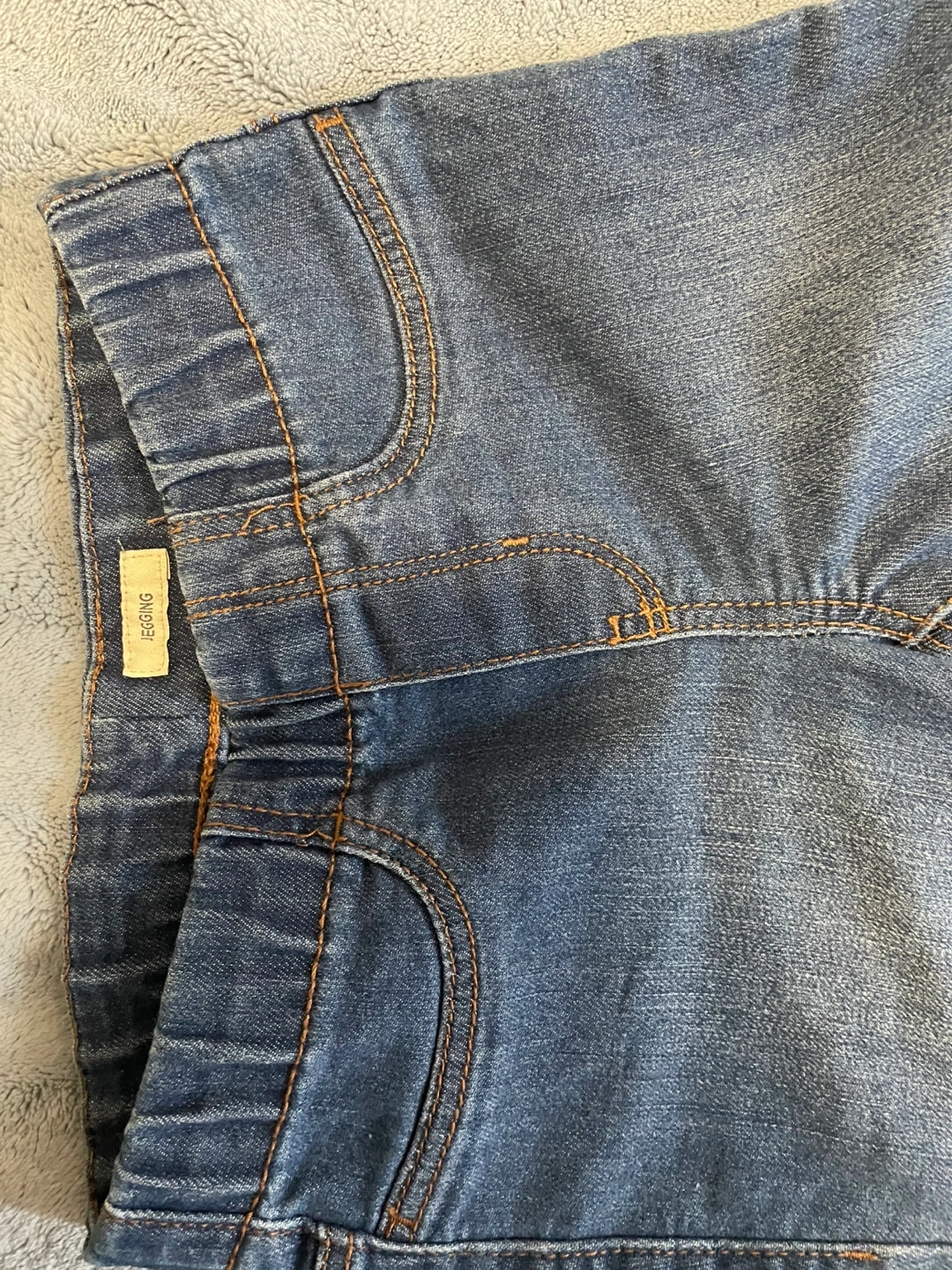 These are girls' denim jeggings with an elastic waistband. They're made of a comfortable stretchable denim material. Kids can wear these for everyday activities.
