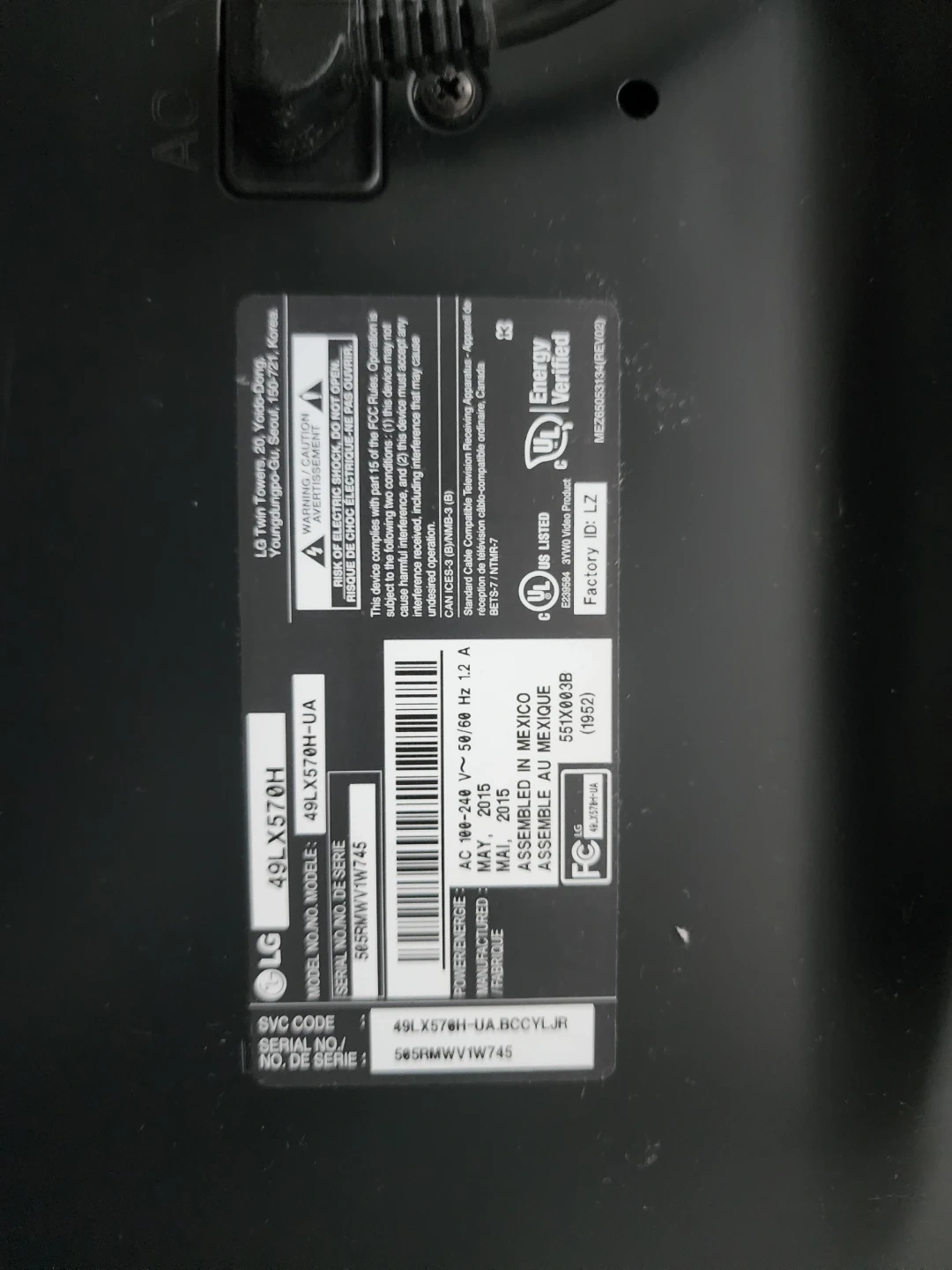 LG 49 inch commercial TV, model 49LX570H. Manufactured May 2015. This TV has multiple HDMI inputs, USB ports, and a LAN connection. It's great for displaying content in businesses or public spaces.And I don't have any remote for it and it's not a smart TV .