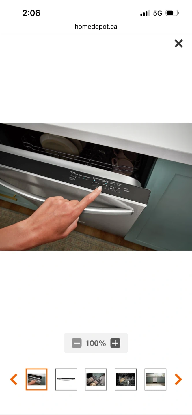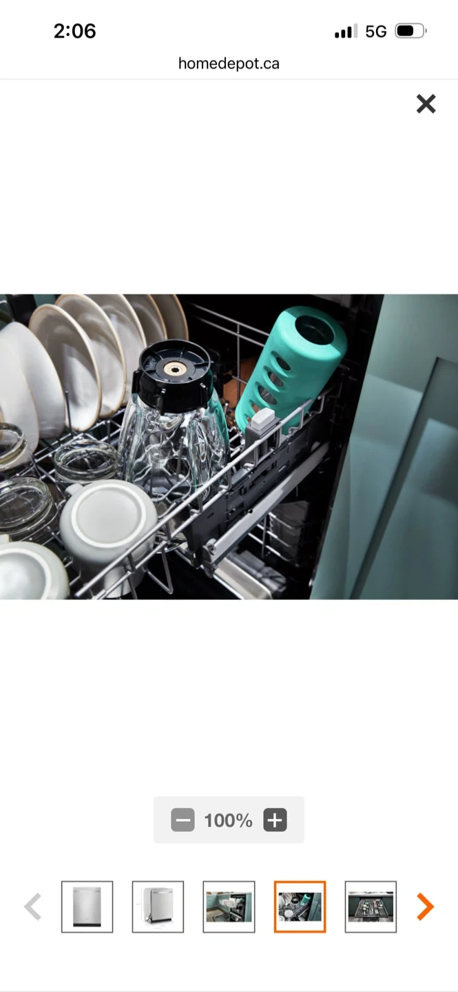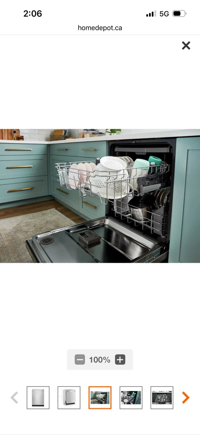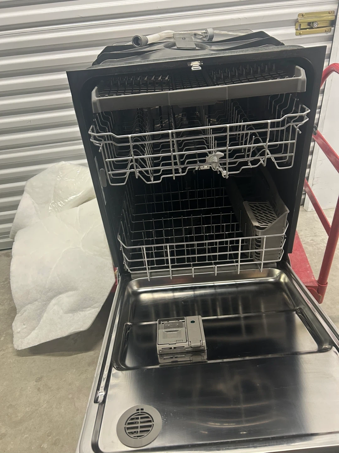 New Whirlpool stainless steel dishwasher. It's a standard-sized unit with a spacious interior. Dimensions are 34-1/2" H x 26-1/2" D x 23-7/8" W.