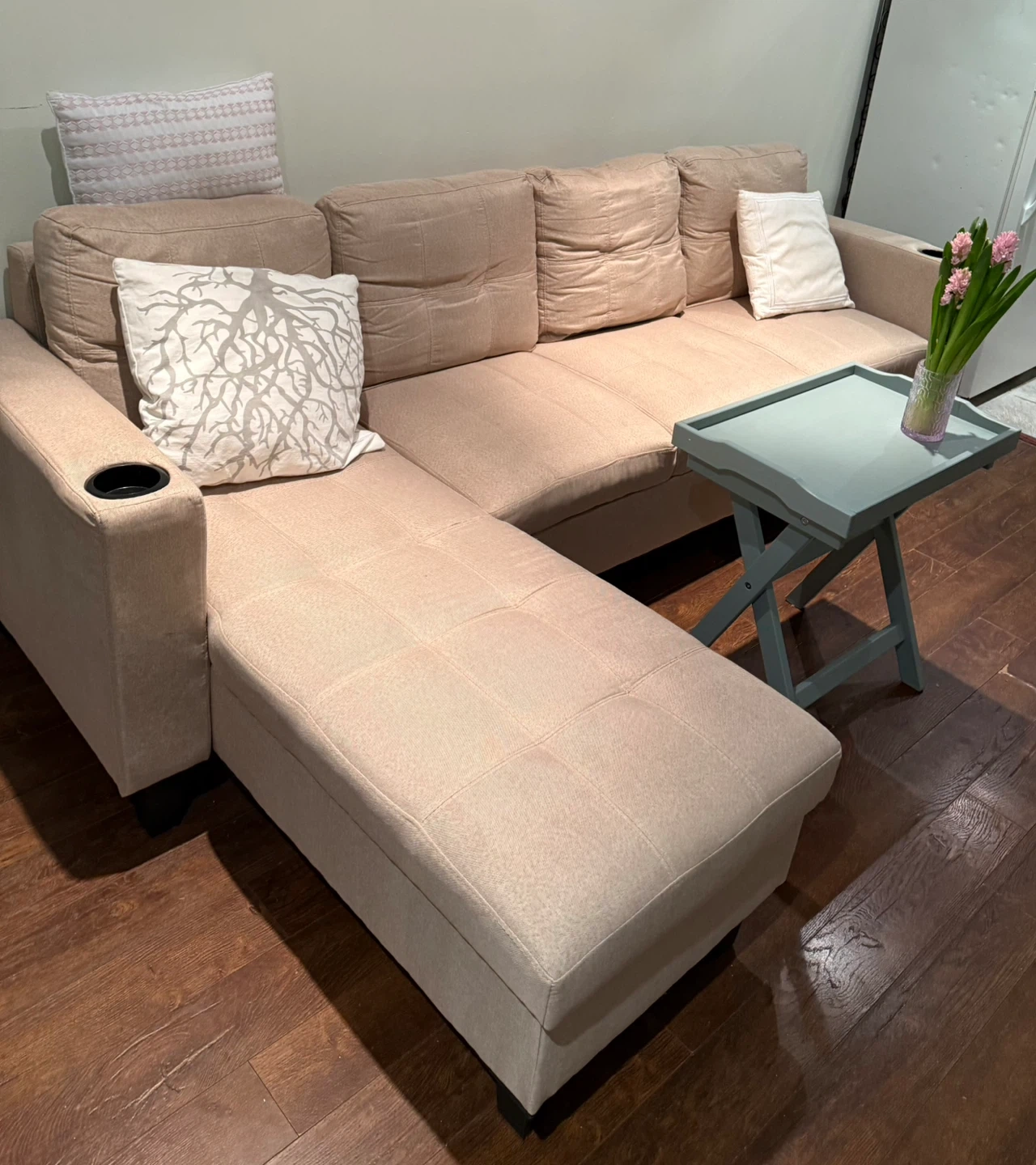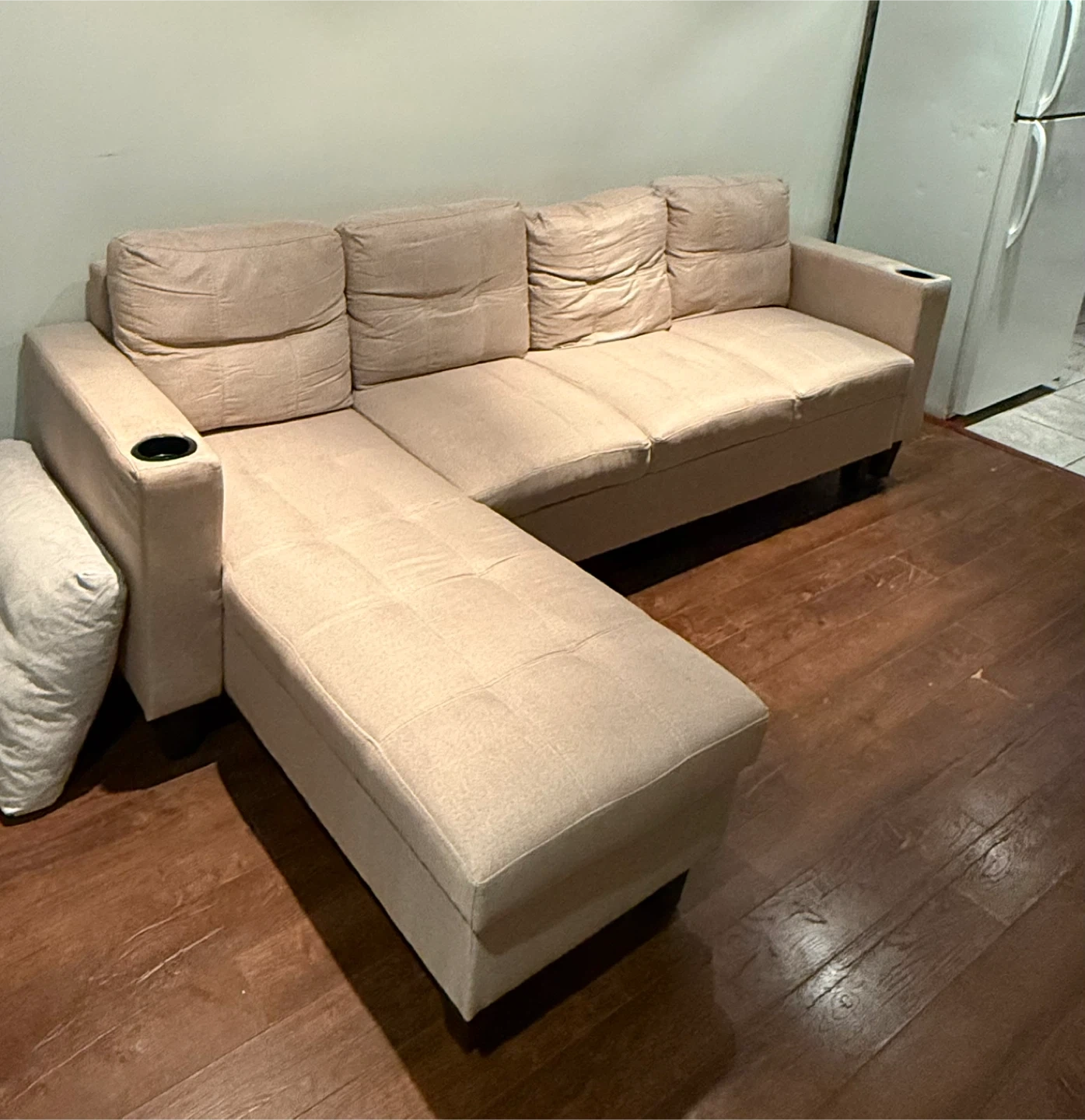 Beige L-Shaped 4-Seater Sectional – Right Side Lounge