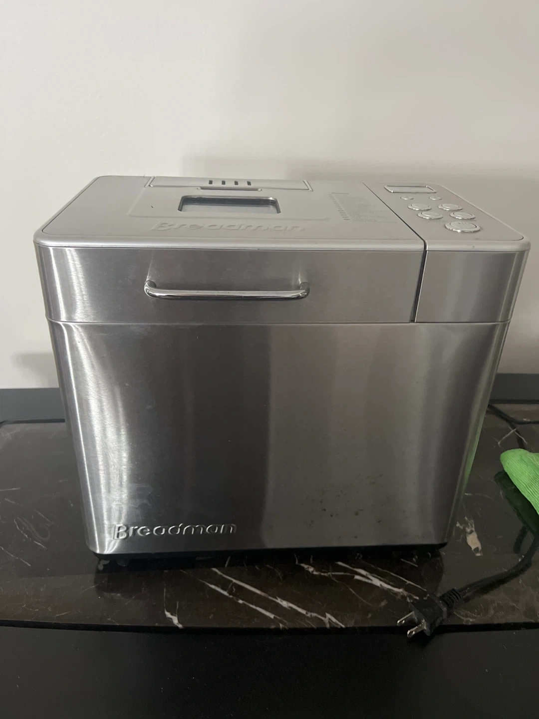 This Breadman bread maker is made of stainless steel and has multiple bread settings. It has a digital display and easy-to-use buttons for selecting your desired program. Makes fresh bread at home!