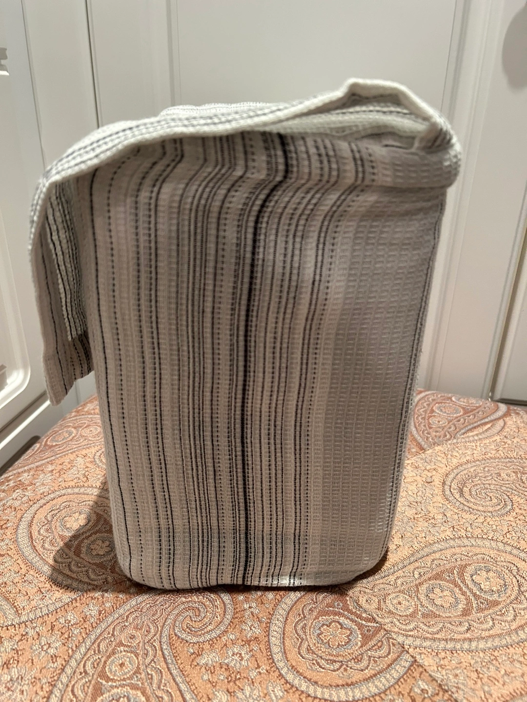 New Hudson's Bay boho duvet cover set. King size. Three pieces: duvet cover, two shams. Features a subtle striped pattern in greys and whites. 100% cotton. Machine washable. I don’t respond to lowball offers.