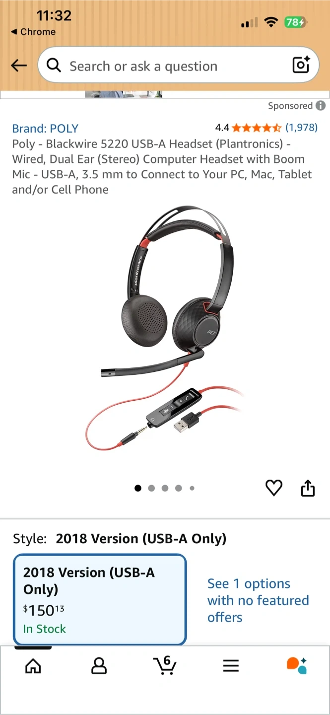 Like New Poly Blackwire 5220 Wired Headset with Mic. Ergonomic Design, Crystal Clear and Comfortable for Long Time Wearing. Perfect for Online Meeting, MS Team, Zoom…YouTube Music…
