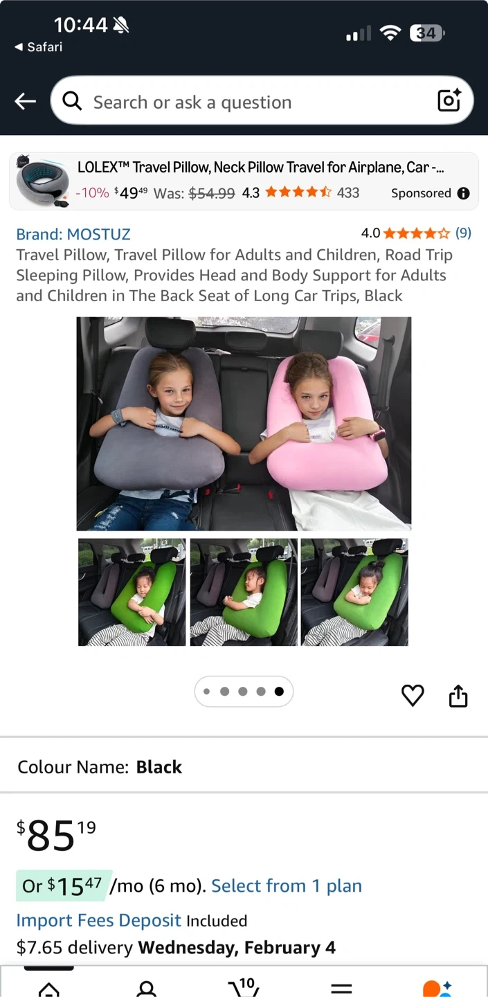 U-shaped travel pillow made with super soft fabric and filling sponge. It has a buckle design for secure attachment. Pillow measures 27 inches in height and 18 inches in width. It's designed for head and body support during car rides or flights.