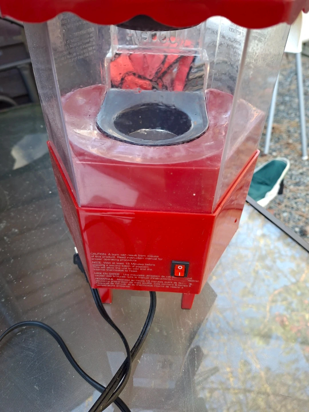 This red and clear popcorn machine brings a fun retro vibe to any movie night. It features a clear viewing window to watch the popcorn pop. The compact size makes it easy to store when not in use. Get ready for some tasty, fresh popcorn!