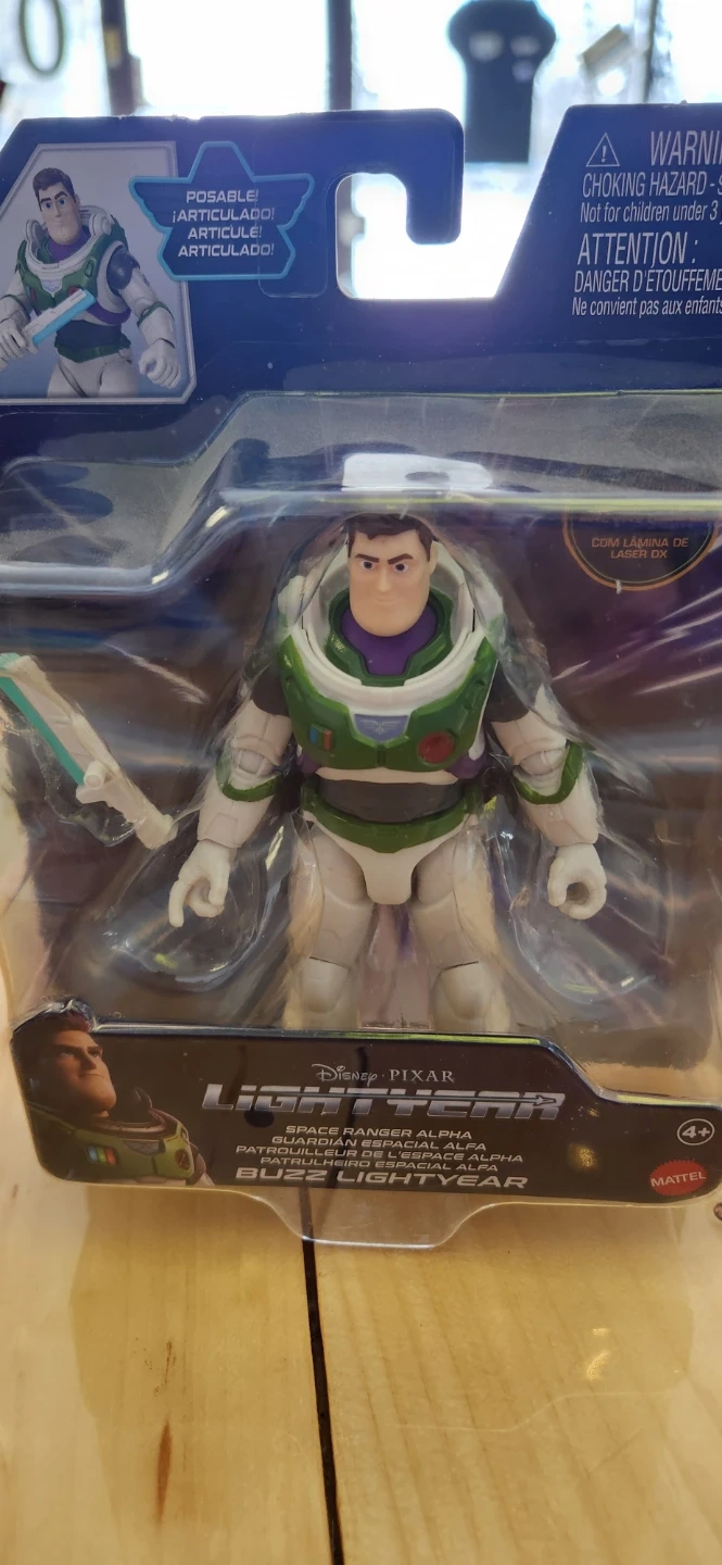 This is the Disney Pixar Lightyear Space Ranger Alpha Buzz Lightyear action figure. It's about 5 inches tall and comes with a laser blade accessory. It's articulated for posing and play!
