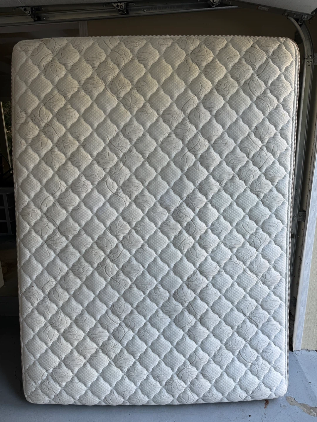 Gently used Queen size bed frame in excellent condition — very clean and almost like new. Sturdy wooden slats provide great support, no box spring needed.