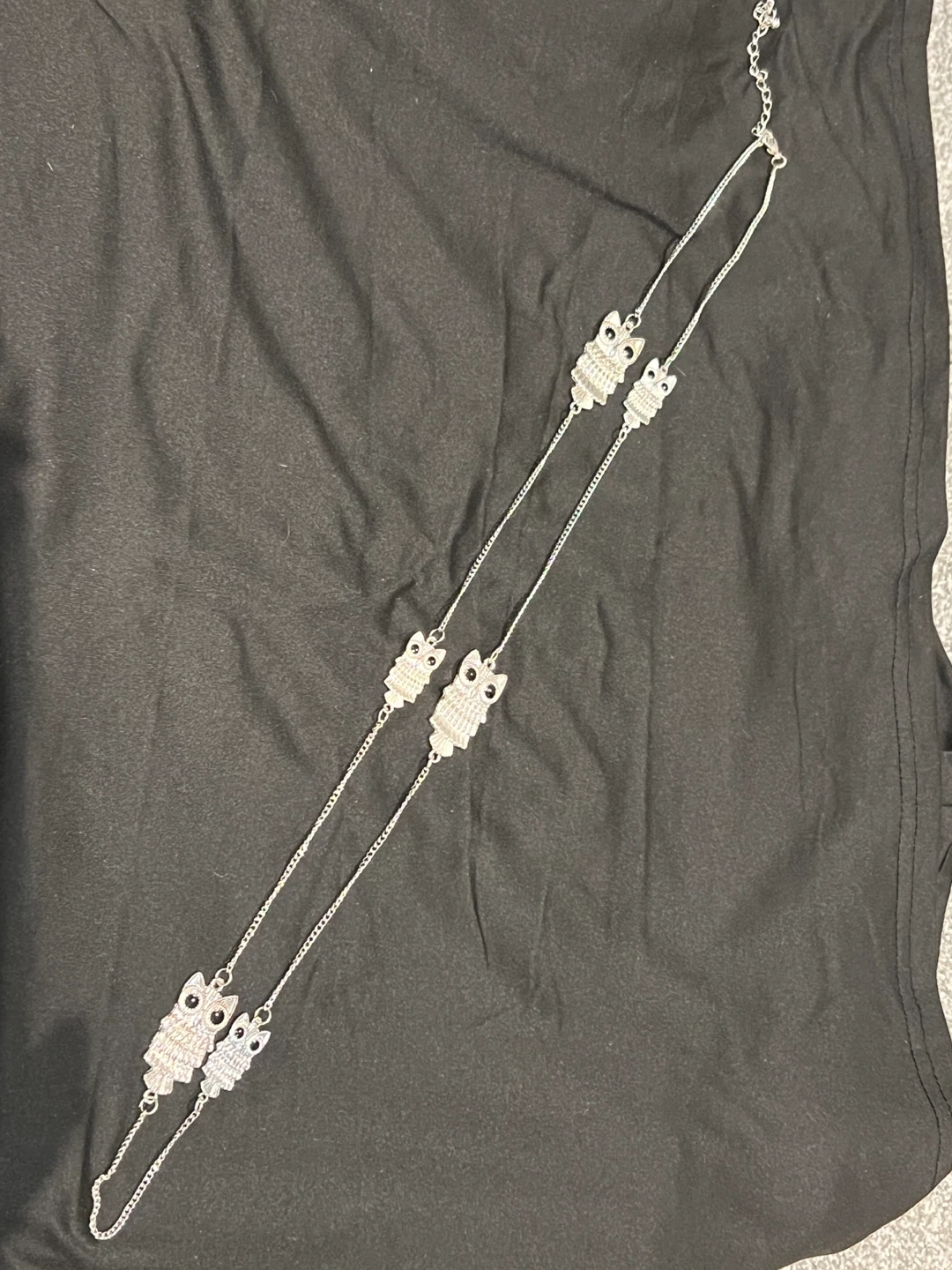 Selling a cute owl necklace! It's a silver-coloured chain with little owl charms. It's in great condition and would be a fun addition to any outfit