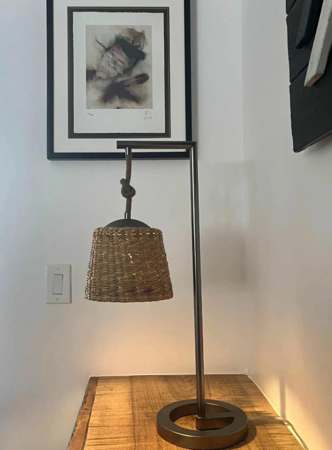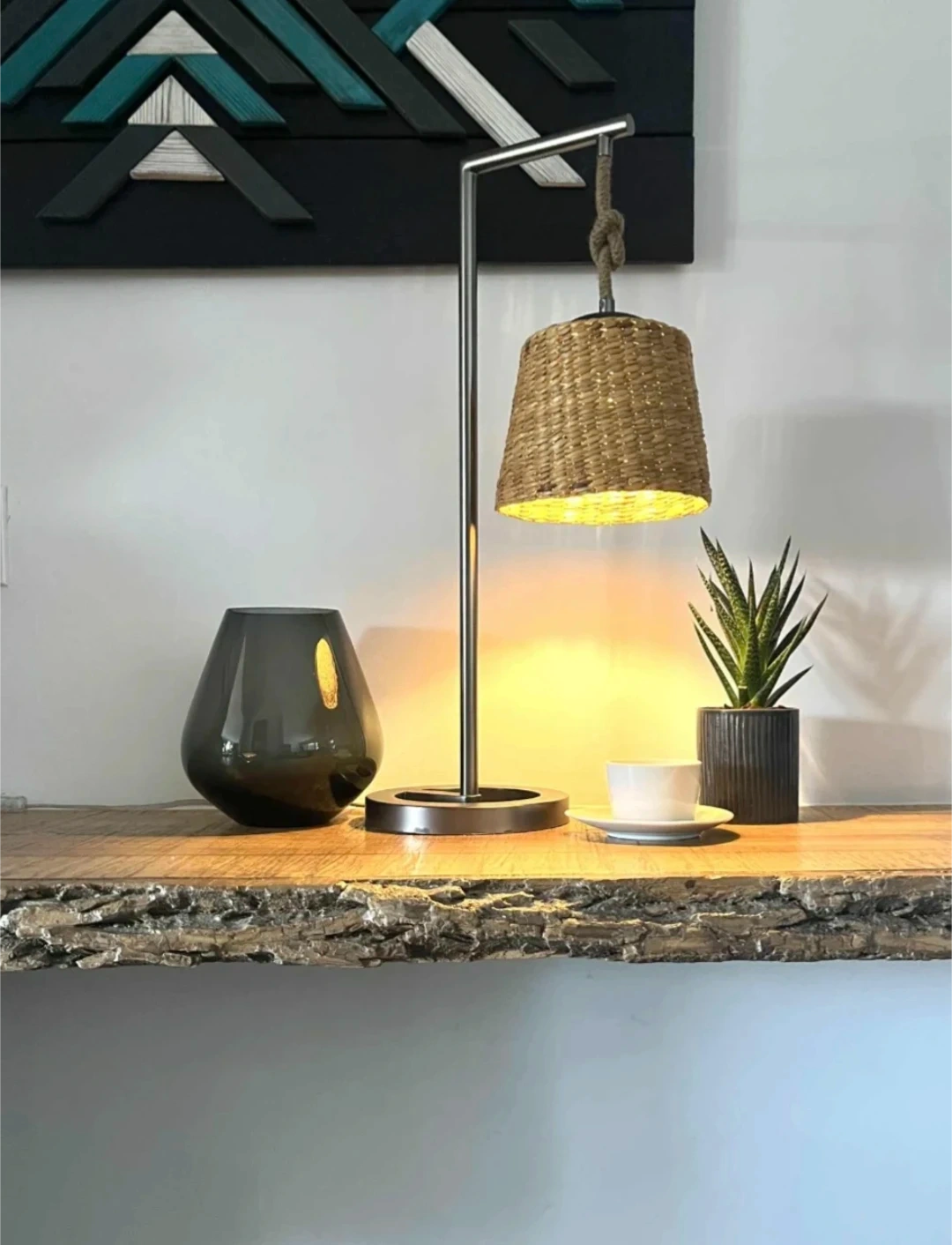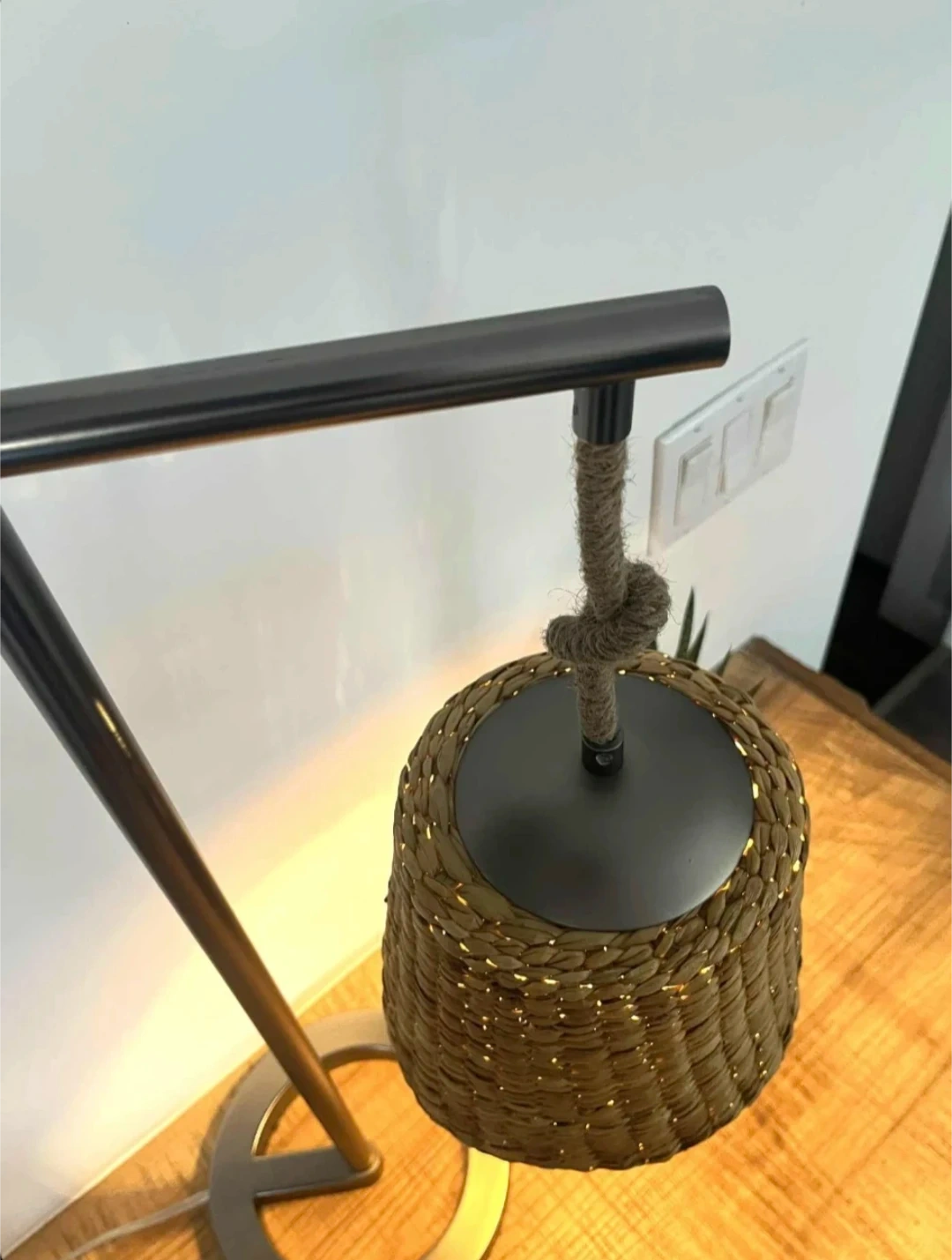 This stylish handwoven basket lamp adds a natural, cozy touch to any space. Designed with a modern metal stand and a woven basket shade, it casts a warm ambient glow—perfect for side tables, consoles, or reading corners.