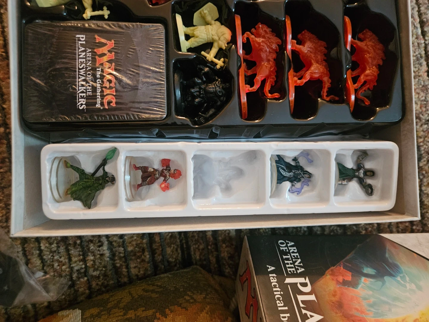 This is the Arena of the Planeswalkers board game. It's a tactical game for 2-5 players. Includes game pieces, dice, and cards.Liliana is missing.