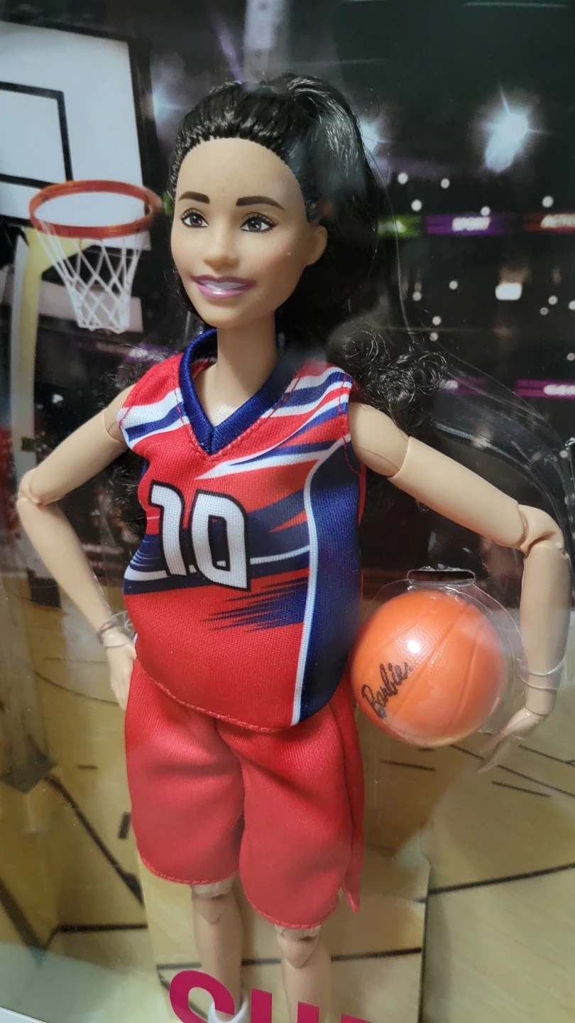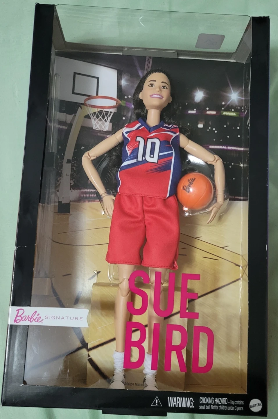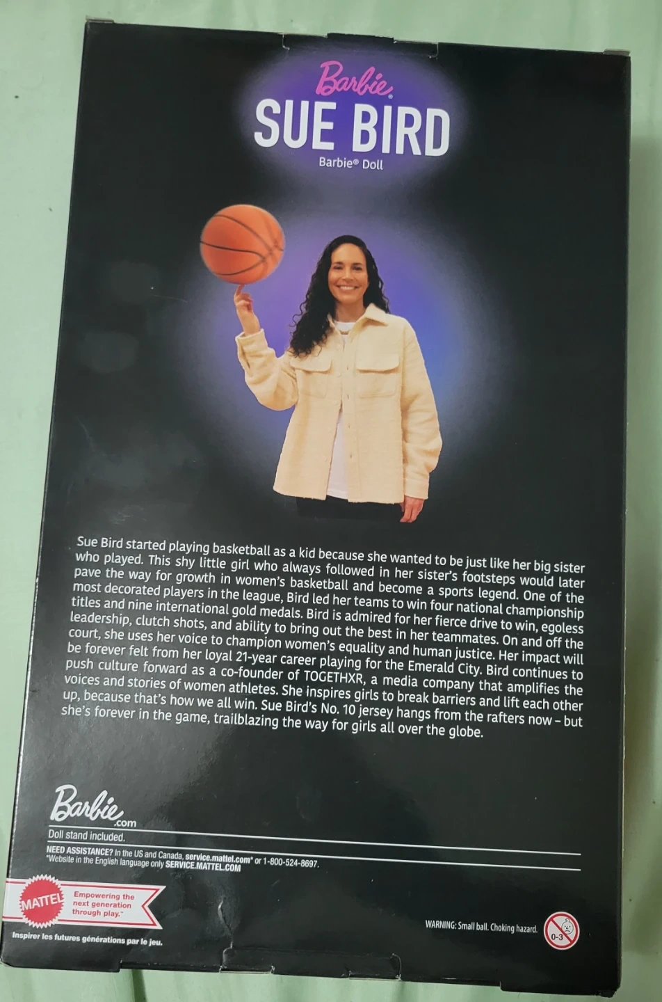 This is a Barbie Signature doll featuring Sue Bird. It includes the doll and a basketball accessory. Doll stand is included.