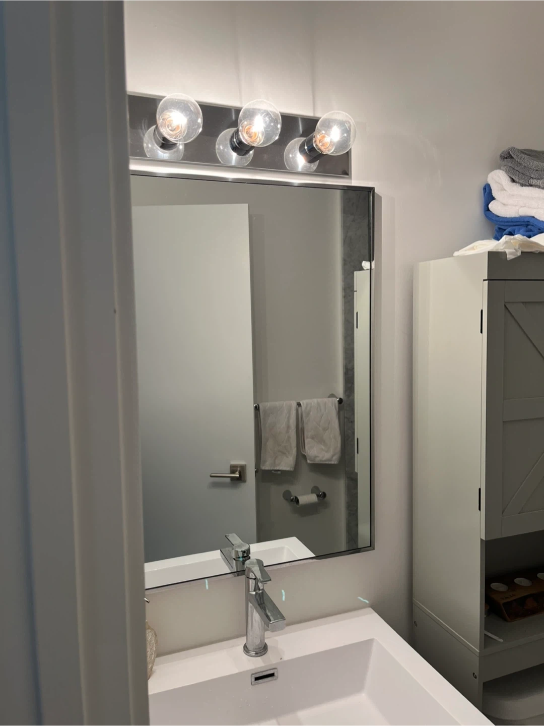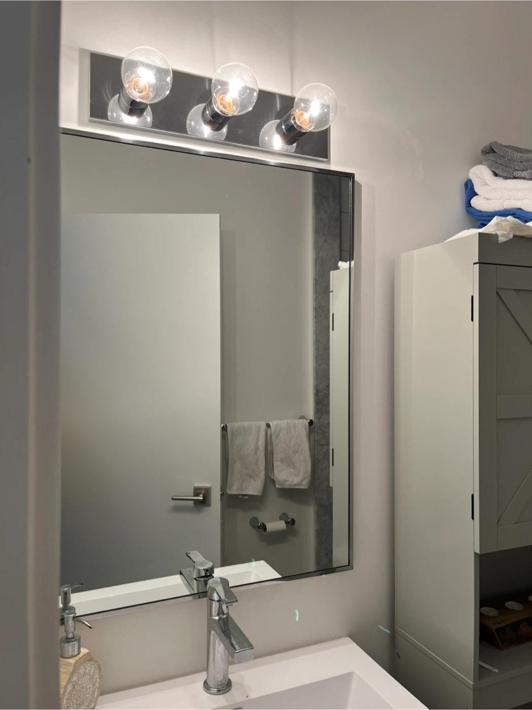 Free mirror and/or vanity light! We actually have 2 identical mirrors and 3 identical vanity lights (lightbulbs included!)