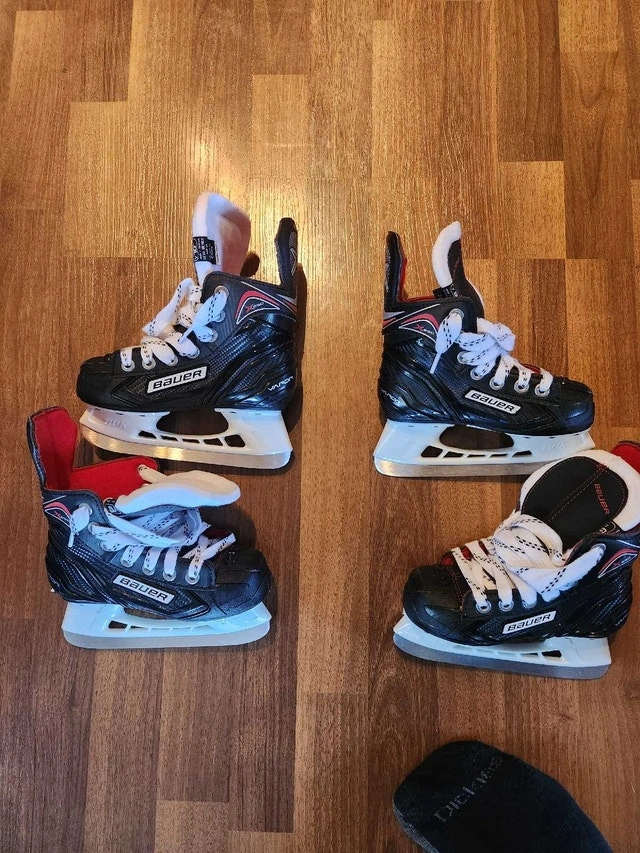 These are a pair of used Bauer hockey skates, perfect for recreational skating or hockey. They are in good condition, with some signs of wear but plenty of life left. Brand: Bauer. Type: Hockey Skates. Condition: Good. Looking at similar listings on Kijiji, a fair price for these skates is around $40.00. If you're seeing this ad, the skates are still up for grabs! I'm ready to pass them on to someone who can put them to good use.