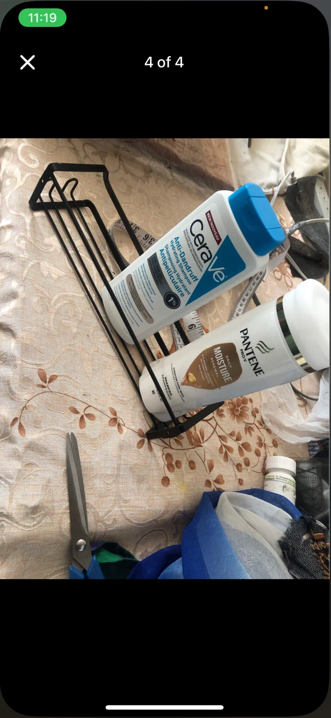 Black metal shower caddy shelf with adhesive backing for easy installation. It's perfect for organizing your shampoo, conditioner, and other shower essentials. Measures approximately 27cm in length.each $3