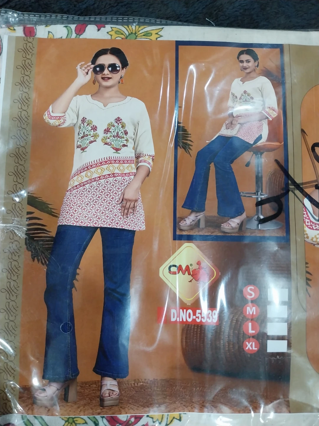 This CM clothing tunic top features a vibrant print. It's made of comfortable fabric. Available in sizes S, M, L, and XL.
