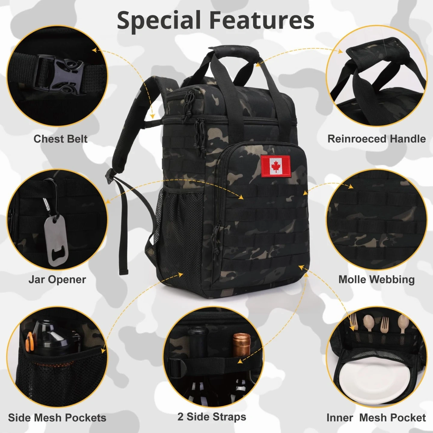 Tactical Cooler Backpack Black Camo Insulated Lunch Bag + Extra