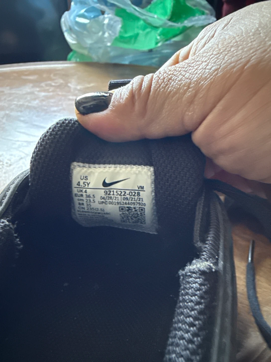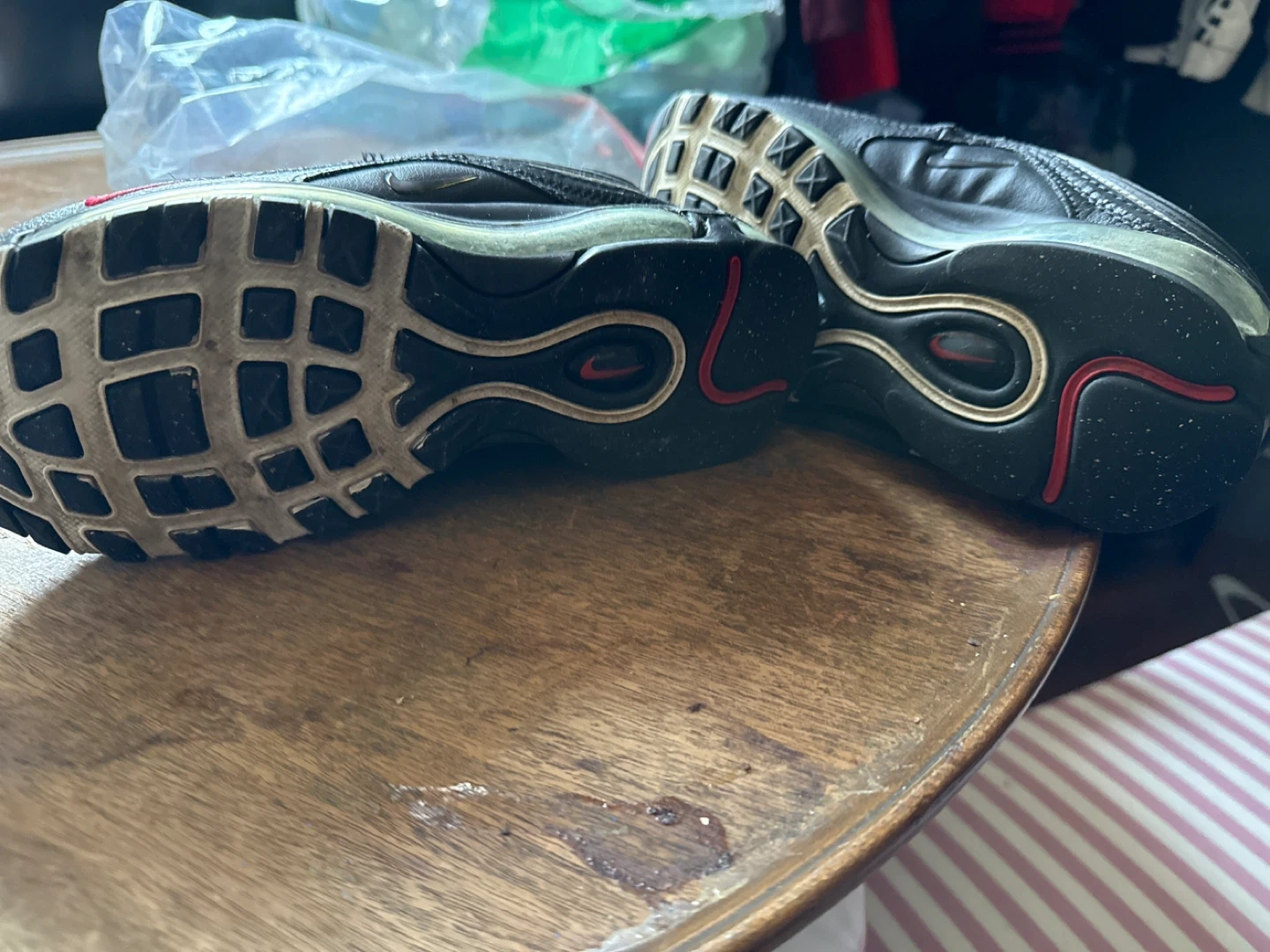 Black Nike Air Max 97 sneakers for youth. Features a black and white design with red accents. Size 4.5Y.