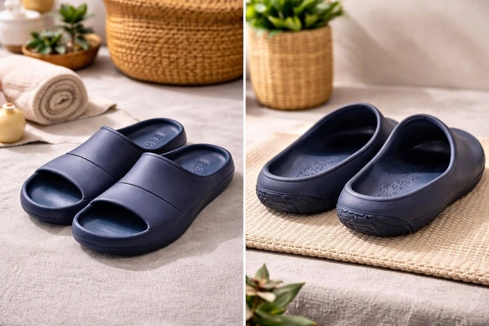 Lightweight navy blue comfort slides in excellent condition. Clean, minimal look and super easy to slip on and go. Perfect for around the house, quick errands, pool/gym, and summer wear. Non-slip textured sole and cushioned footbed for comfort. Gently used, no cracks or major wear. Feel free to message if you have any questions!