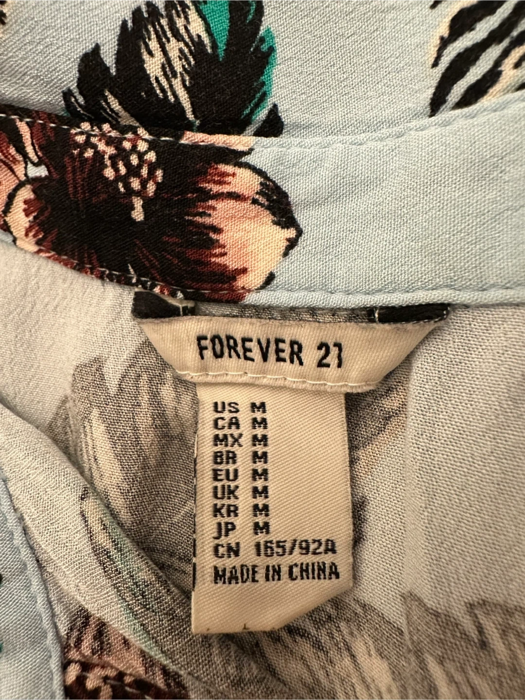 Forever 21 Light Blue Floral Short Sleeve Button Up Shirt