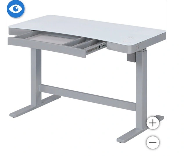 Check out this great Tresanti adjustable height sit/stand tech desk. This modern desk features a smooth, glass-top writing surface, and adjustable height allowing you to switch between sitting and standing positions effortlessly. It includes integrated technology such as a wireless charging pad and USB ports for convenient device charging. It also has a built in drawer!