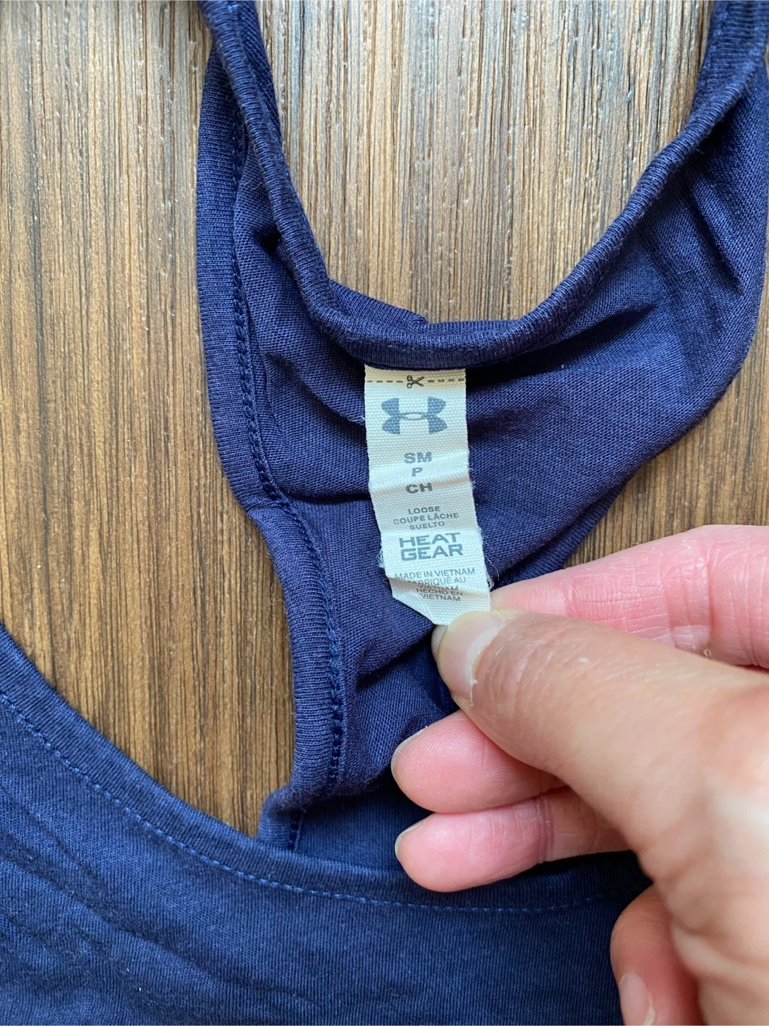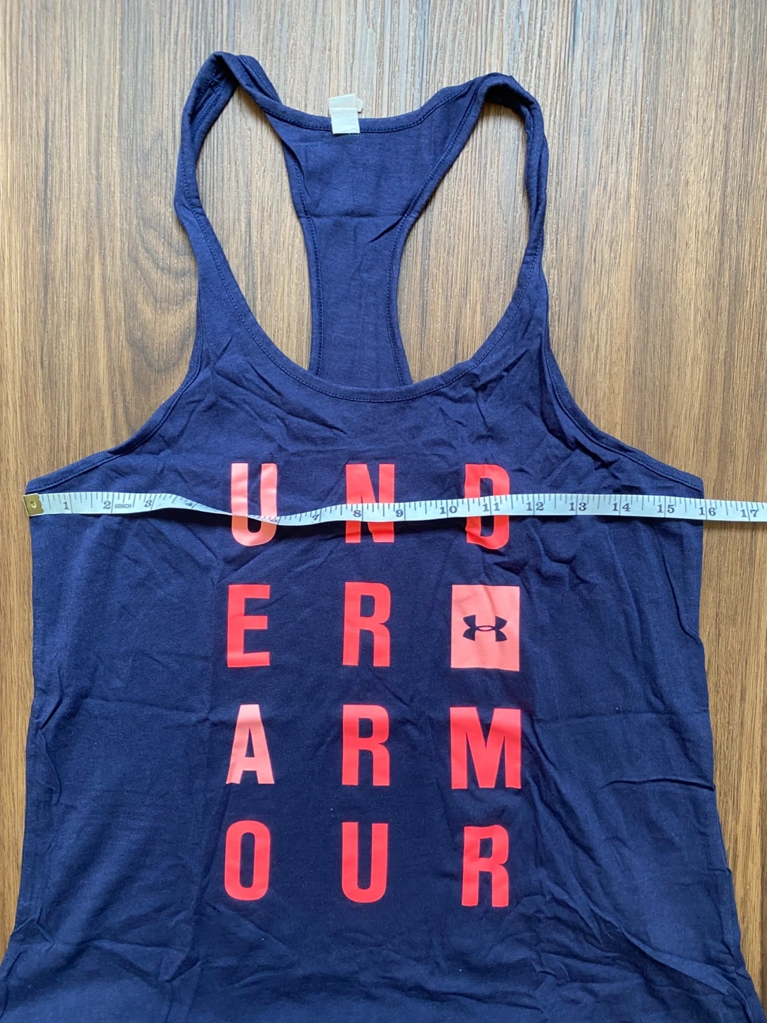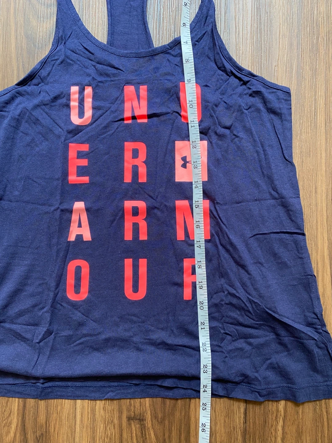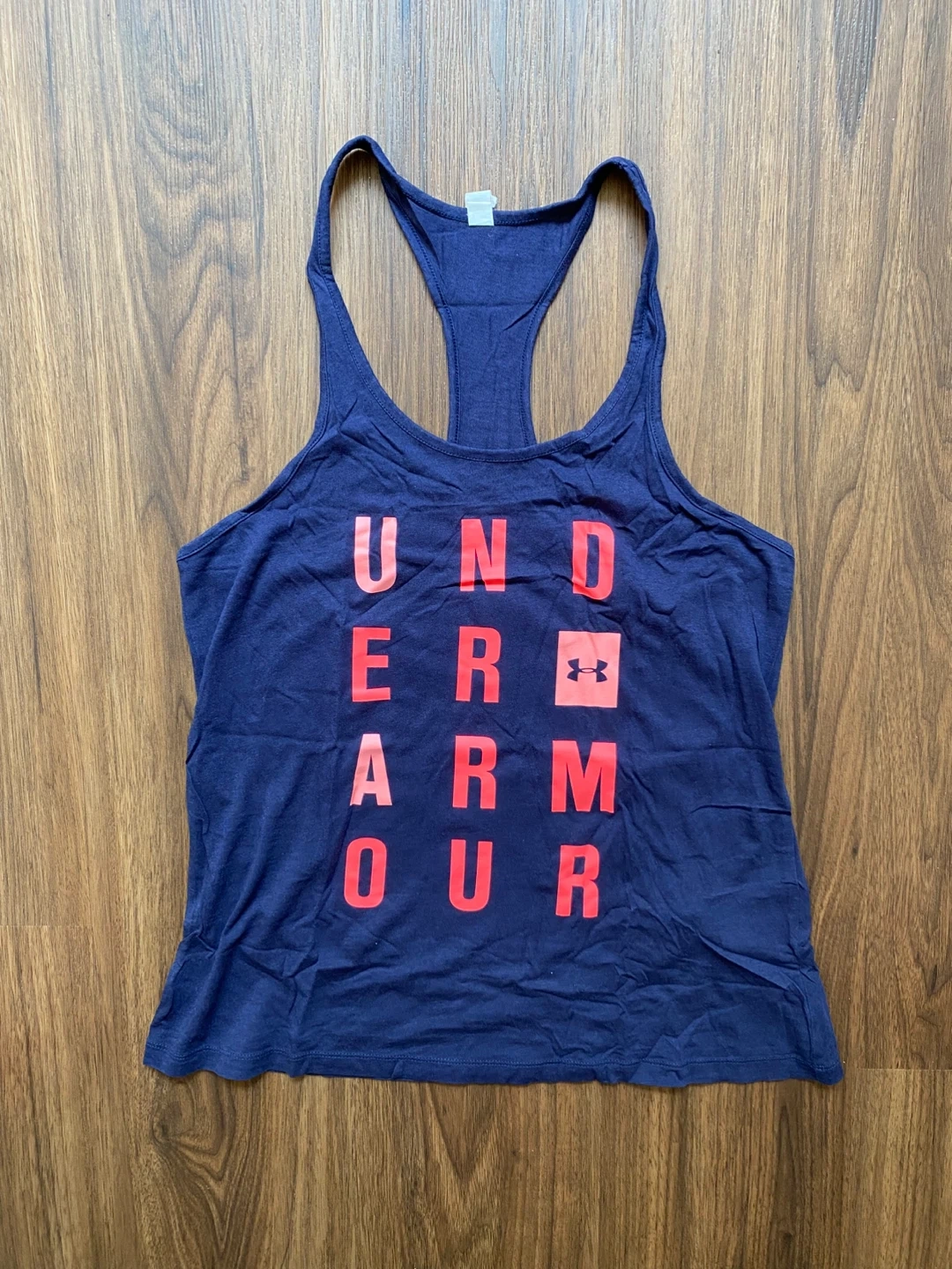This is a blue Under Armour tank top in size small. It's made for loose, comfortable wear. Great for workouts or casual use!