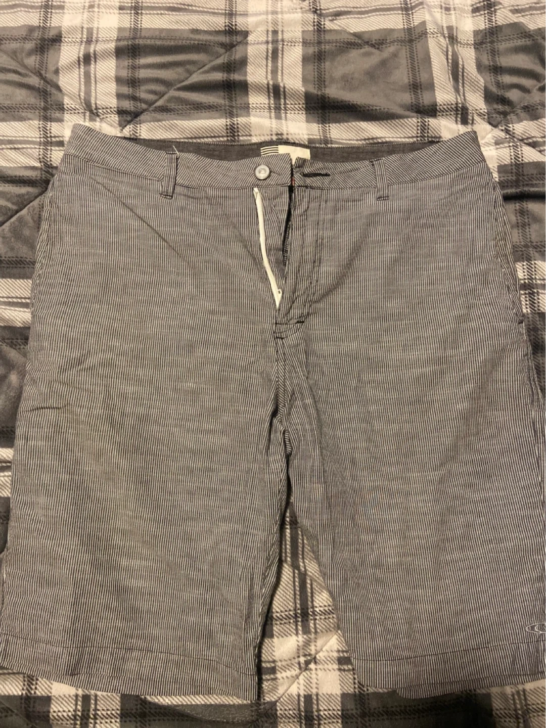 Mens O’Neill Shorts Size 32. These are pre-owned but in very good condition. No rips or tears. They are a men’s size 32 waist. They are a pair of shorts meant for dressing up. It isn’t meant for the gym or for working out. The waistband doesn’t have any stretch to it. It has 2 side pockets, belt loops, and 2 back pockets. They are a zipper and button close. Contact me if interested.