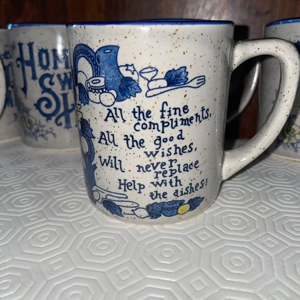 The only damage is one cup with a quote has a crack. Otherwise, no other flaws. There are 19 pieces in total, including lids.