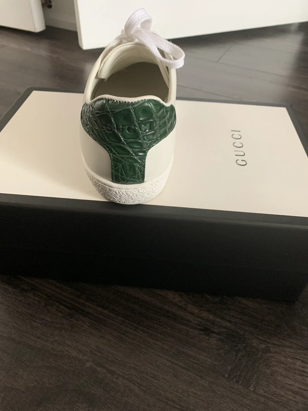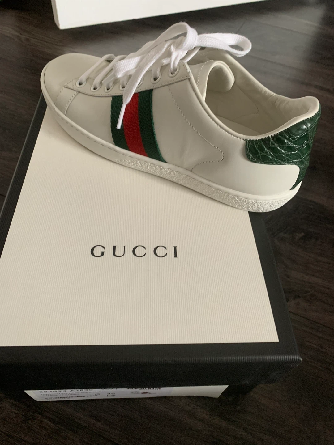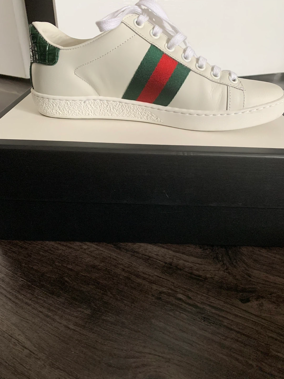 Gucci Ace Sneaker White Green Red Crocodile Embossed Heel