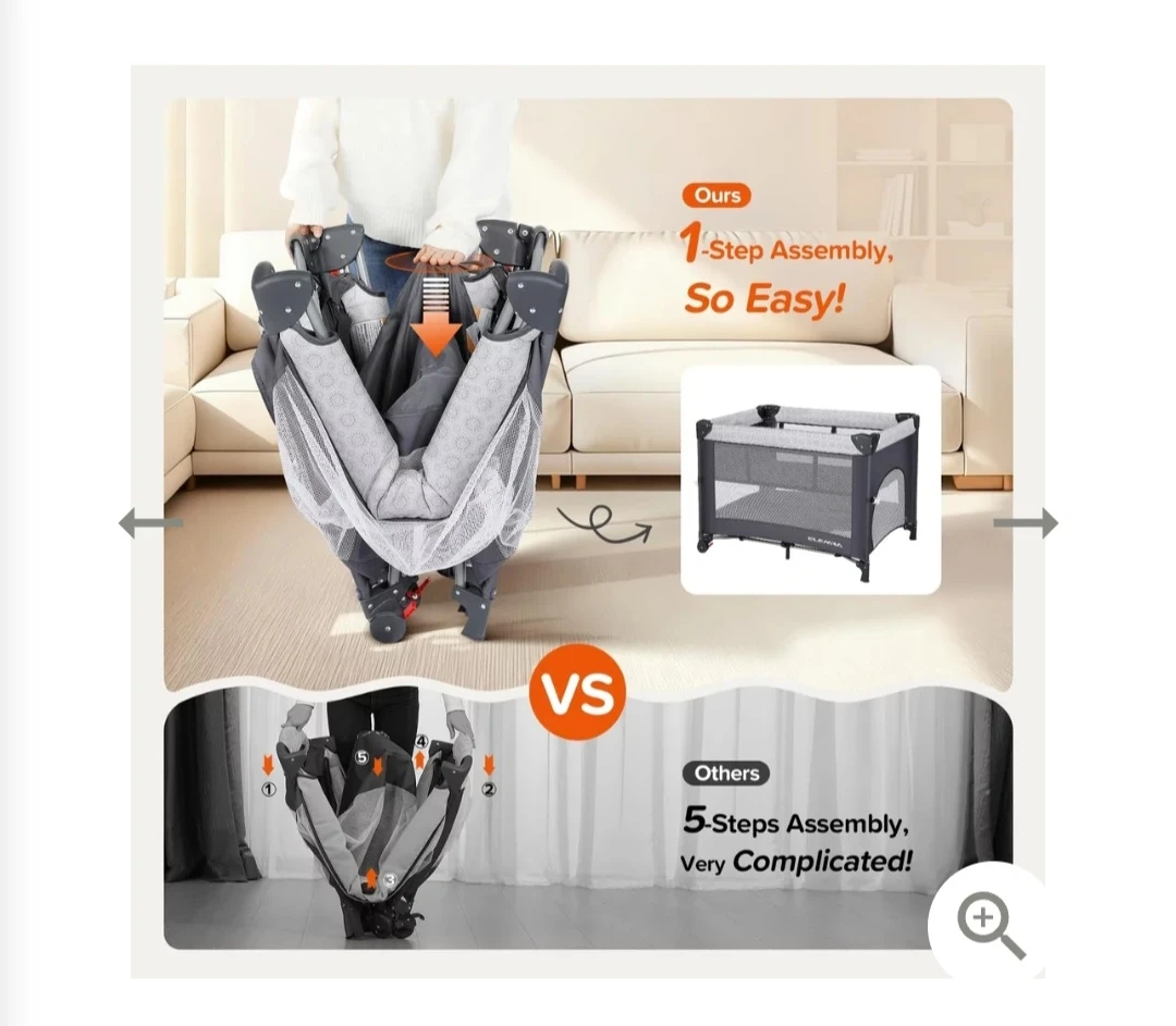 This versatile playpen offers a safe space for your little one with a 4-layer mattress for comfort and support. It includes a waterproof changing table and a bassinet for naps. Setup is a breeze with its 1-step assembly. This playpen is designed for convenience for parents and comfort for babies.