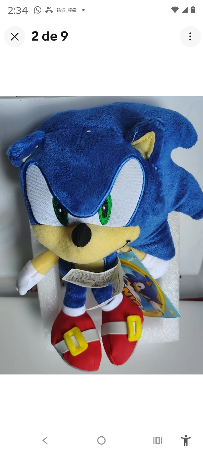 This is a plush toy featuring Sonic the Hedgehog. It's made of soft material and is great for fans of the character. The plush toy is blue and red with yellow accents.
