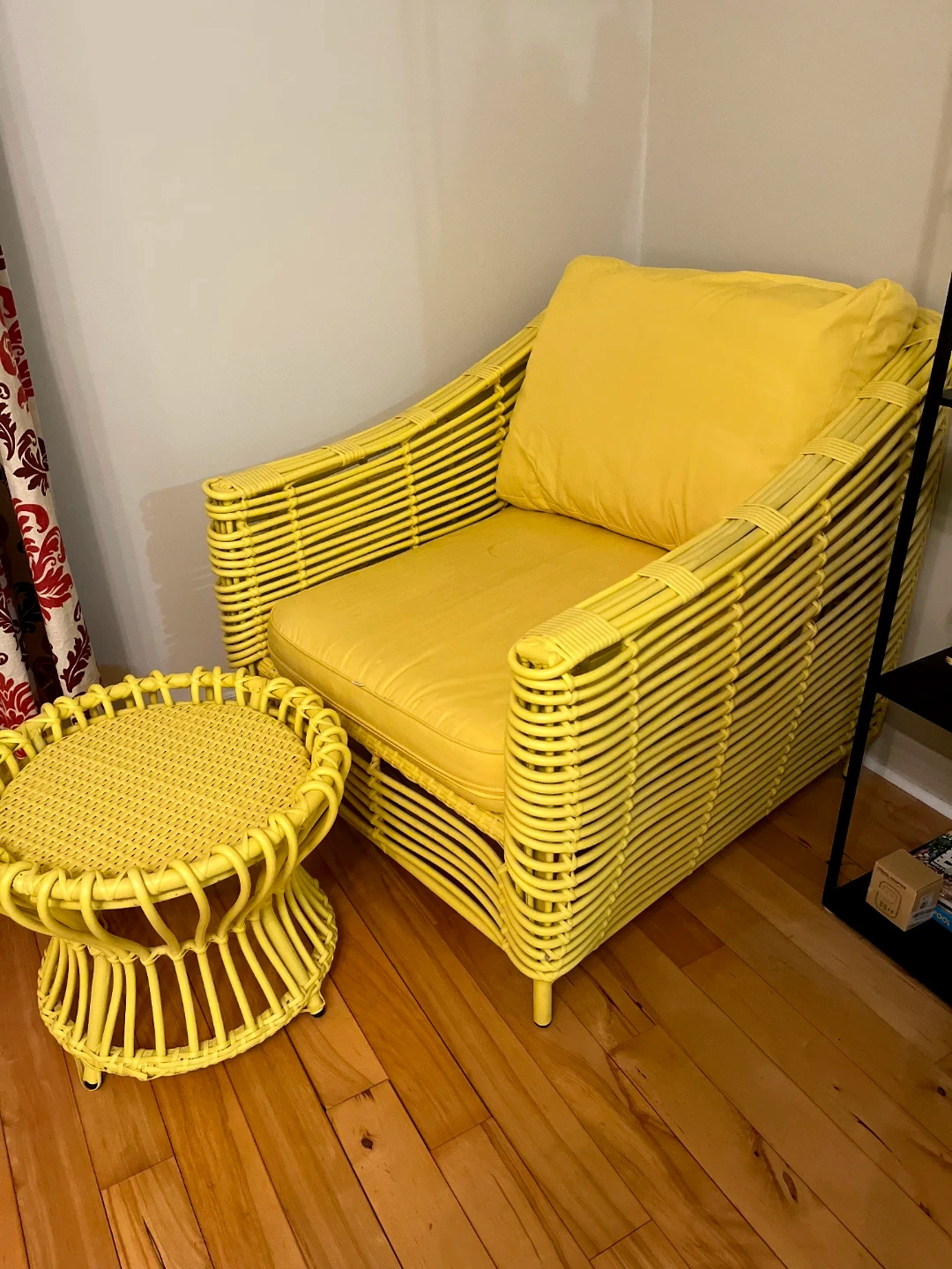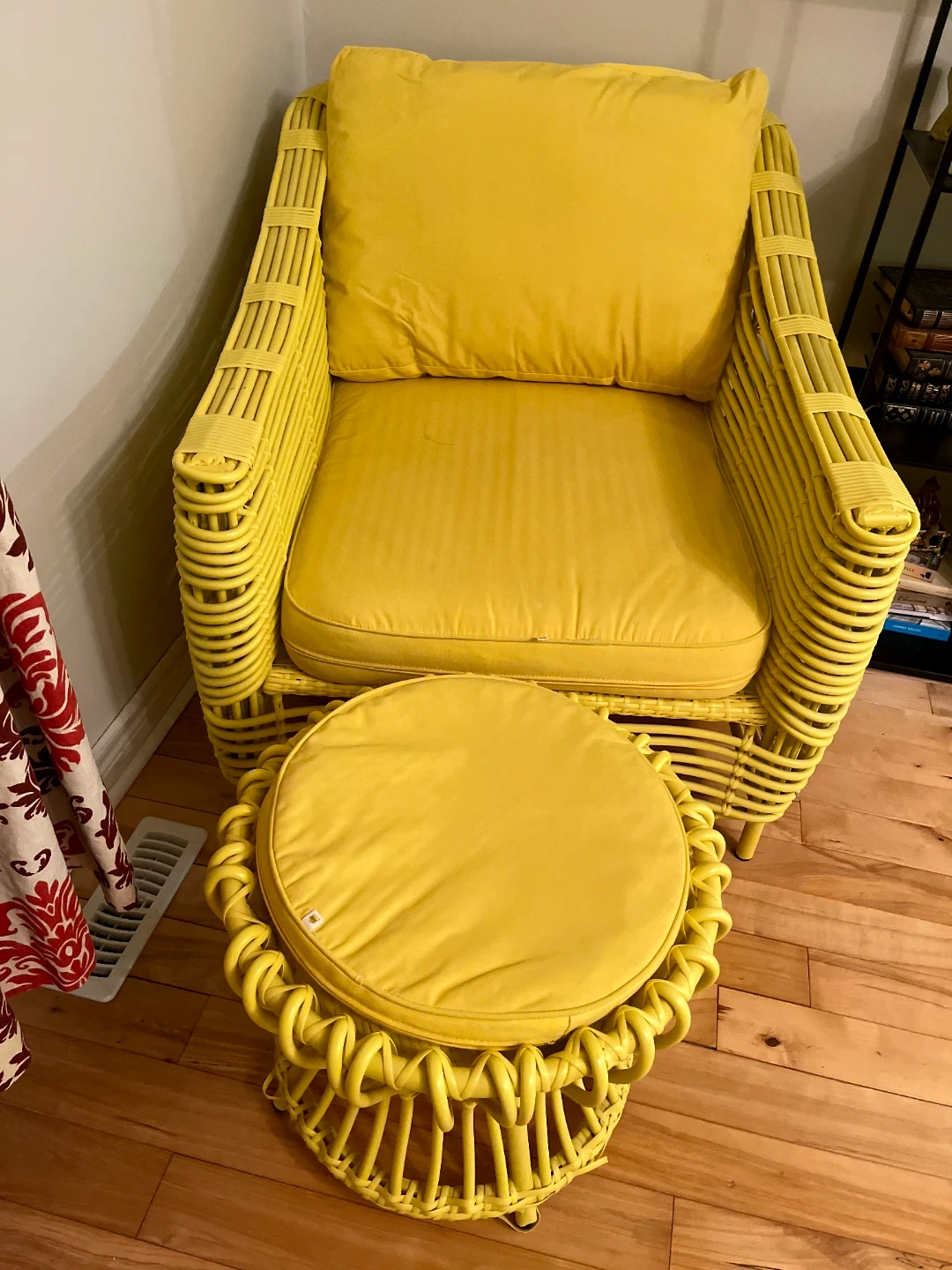Yellow Rattan Accent Chair with Ottoman