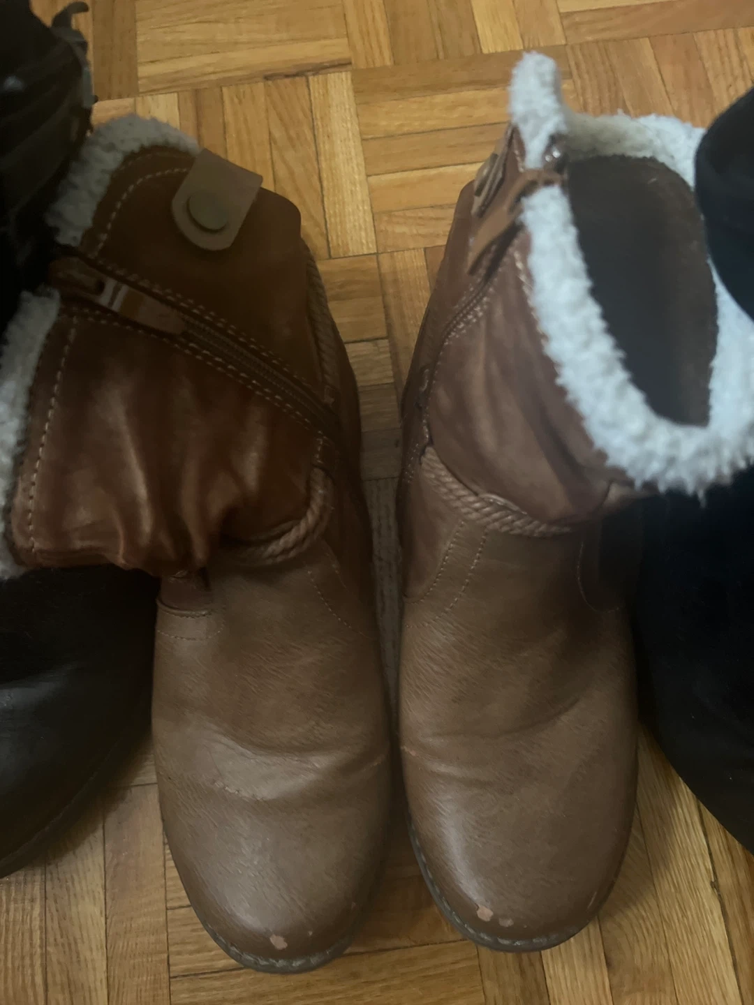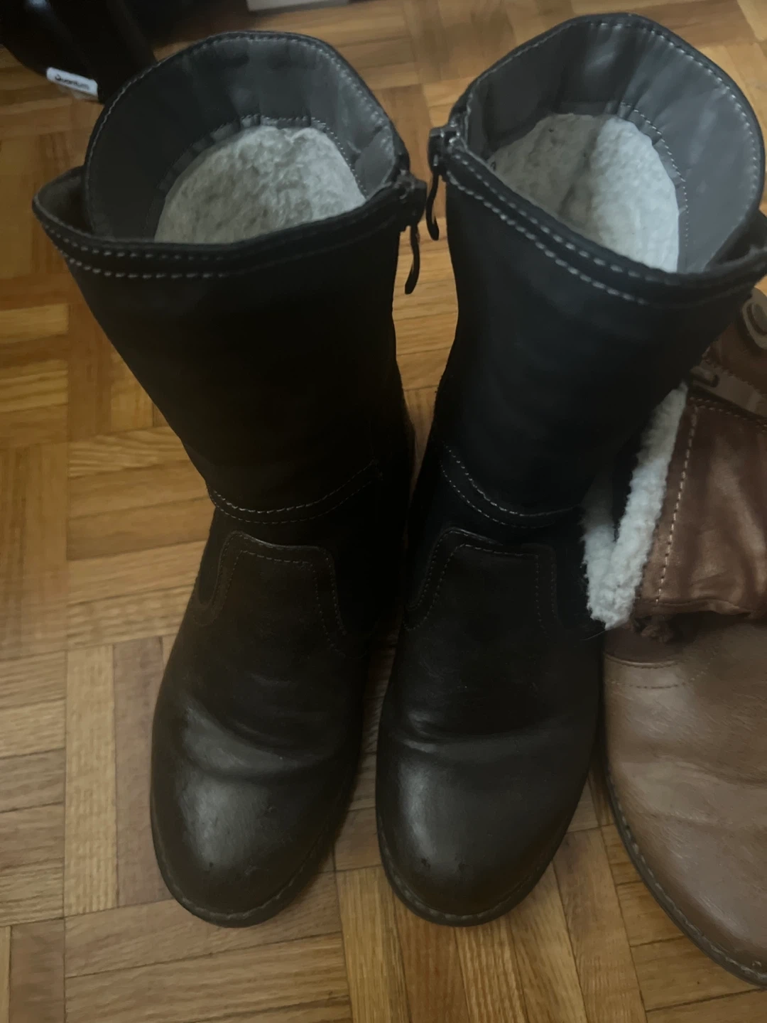 Selling a collection of women's boots in various styles and colours. Includes black heeled boots and brown winter boots. All in good condition and ready for a new home! All 3 for 15.