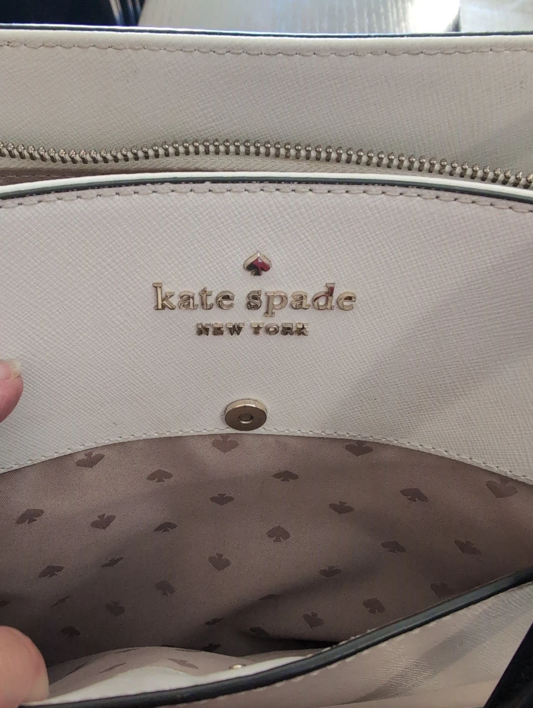 The signature spade pattern interior lining has a small pen marks that could be cleaned.