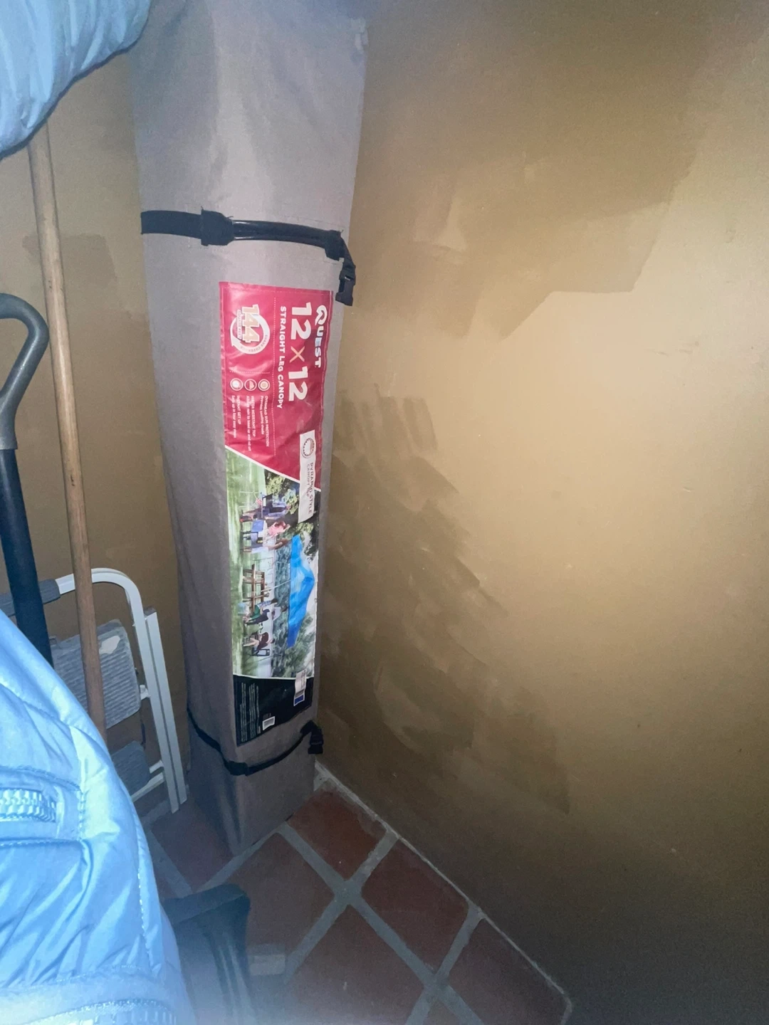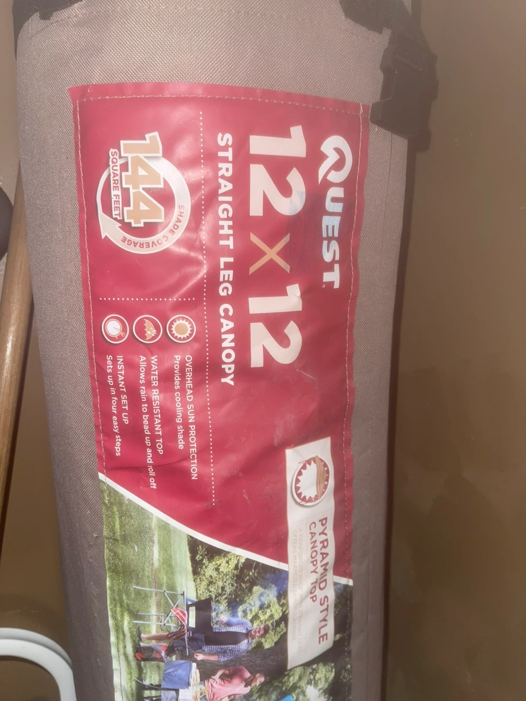 Quest 12x12 straight leg canopy. Overhead sun protection, water-resistant top. Provides cooling shade. Sets up in four easy steps. 144 sq ft shade coverage.