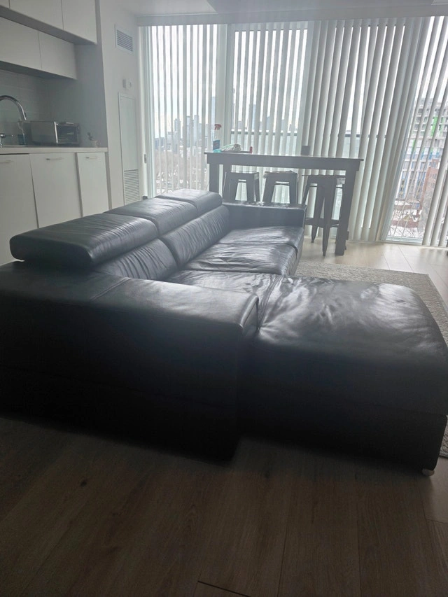 Experience the refined comfort of the Avana Leather Sofa by Natuzzi Italia. Crafted in Italy, this piece features 100% genuine Italian leather, tufted seating, contrast stitching, and rounded metal-framed armrests for a sleek modern touch. Adjustable headrests offer customizable relaxation. Retails over $8000. Asking $2750. Condition: Used - Good. For Sale By: Owner. Cash accepted.