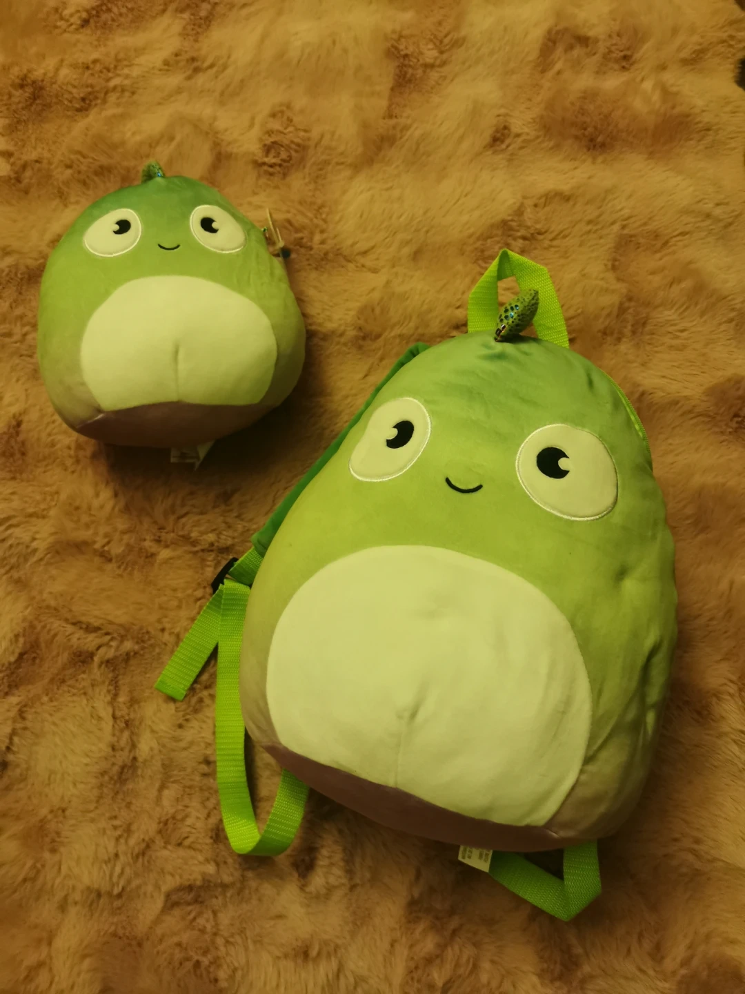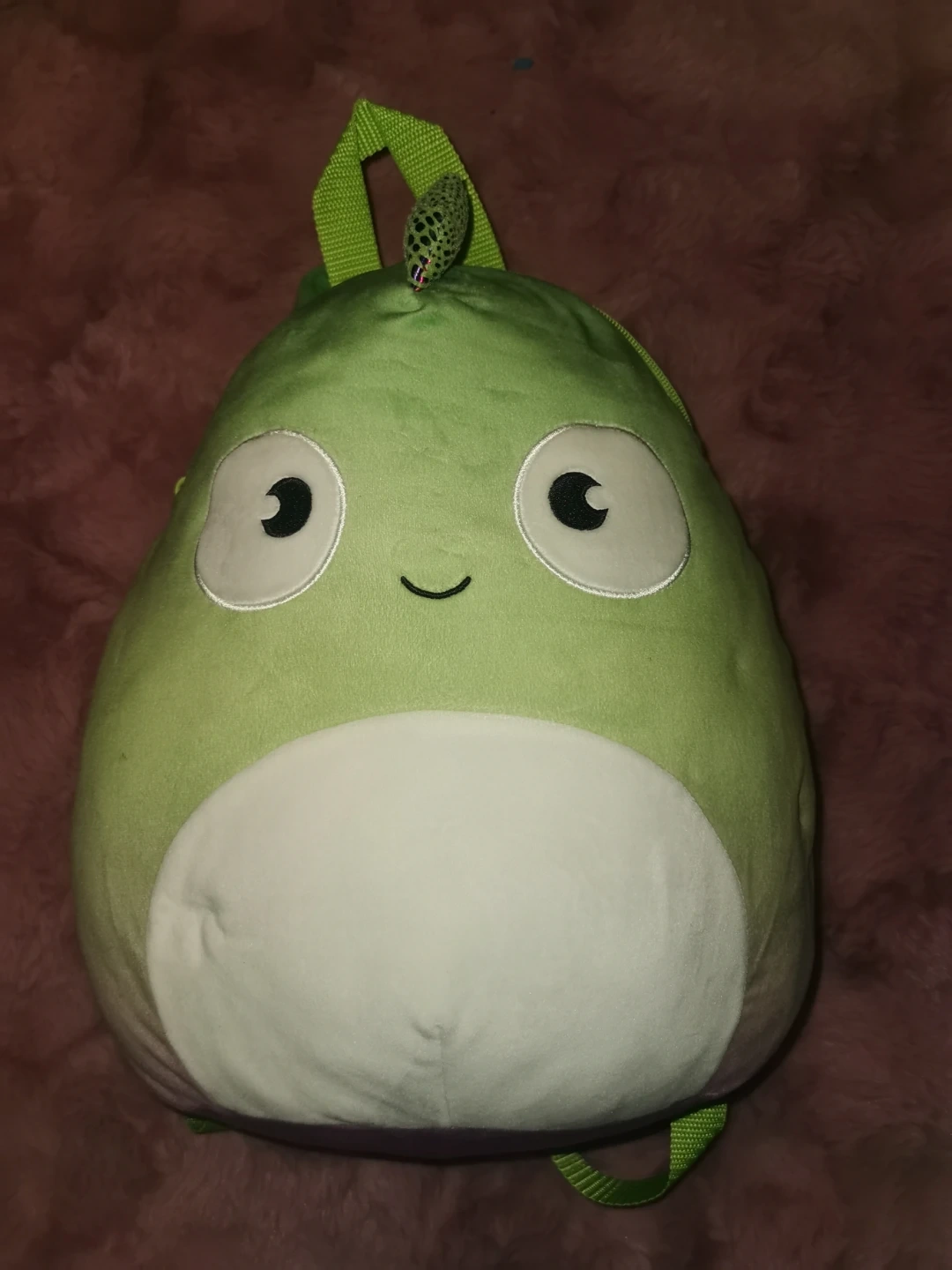 Super cute green dinosaur Squishmallow backpack! It's soft and plush, perfect for carrying little treasures. The adjustable straps make it comfy for kids. Great for daycare or a fun day out!