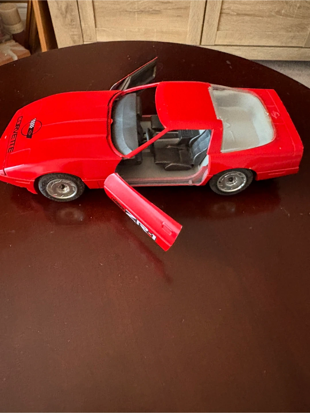 Majorette diecast model of a red Chevrolet Corvette ZR-1. Features opening doors and detailed interior. Made in France. Just rear window