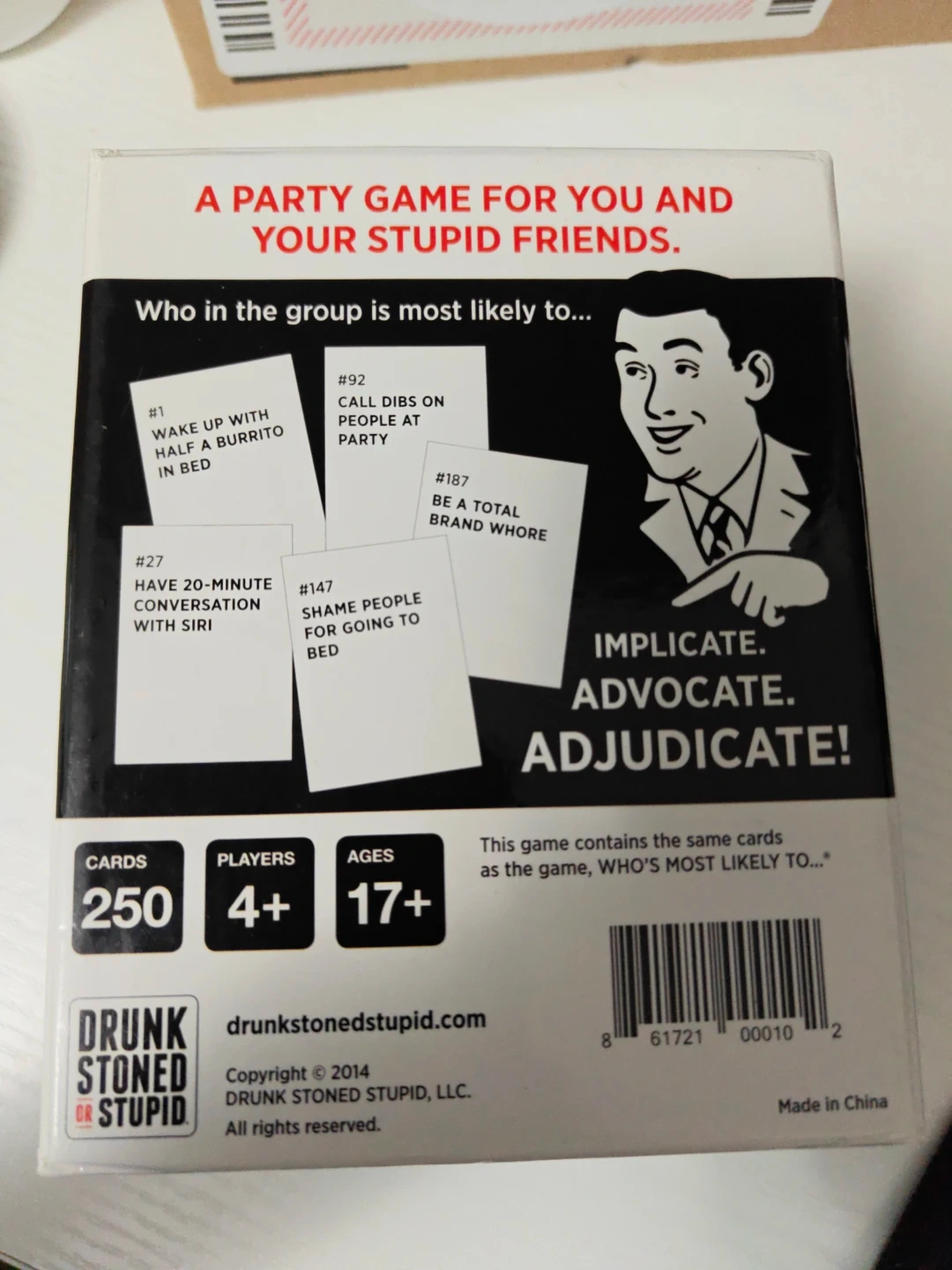 Buy & SellDrunk Stoned or Stupid Party GameDrunk Stoned or Stupid Party Game$10This is the Drunk Stoned or Stupid party card game. It comes with 250 cards for players aged 17 and up. The game is for 4+ players.ConditionLike newWHERE TO MEETKipling stationView MapSELLERverifiedDavidSix Points Plaza1064 reviews0 chats·0 favorites·5 viewsSEND CHAT TO SELLERHi David! I’m interested in your listing.Hi David! I’m interested in your listing.Get the Karrot app to chatSign In to chat